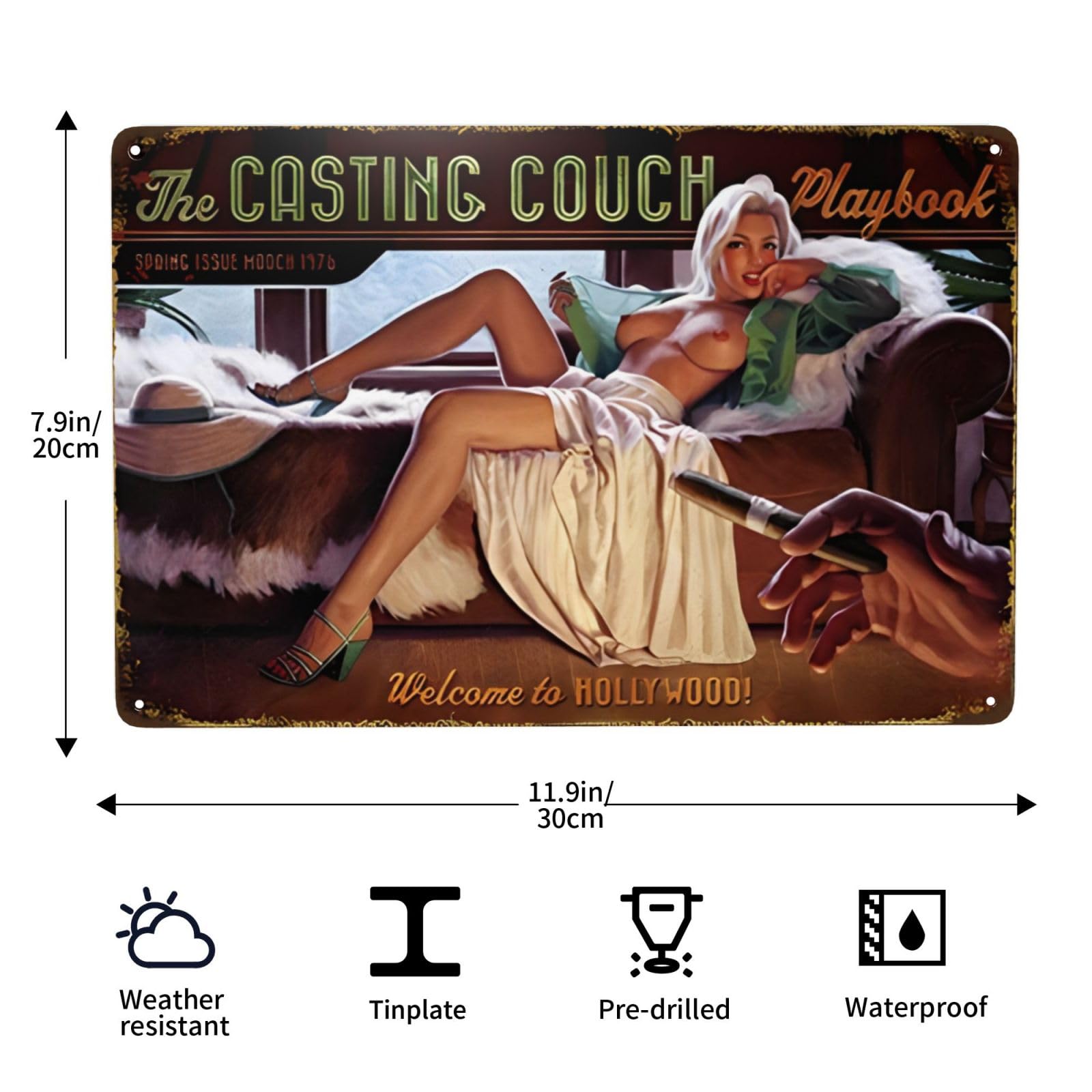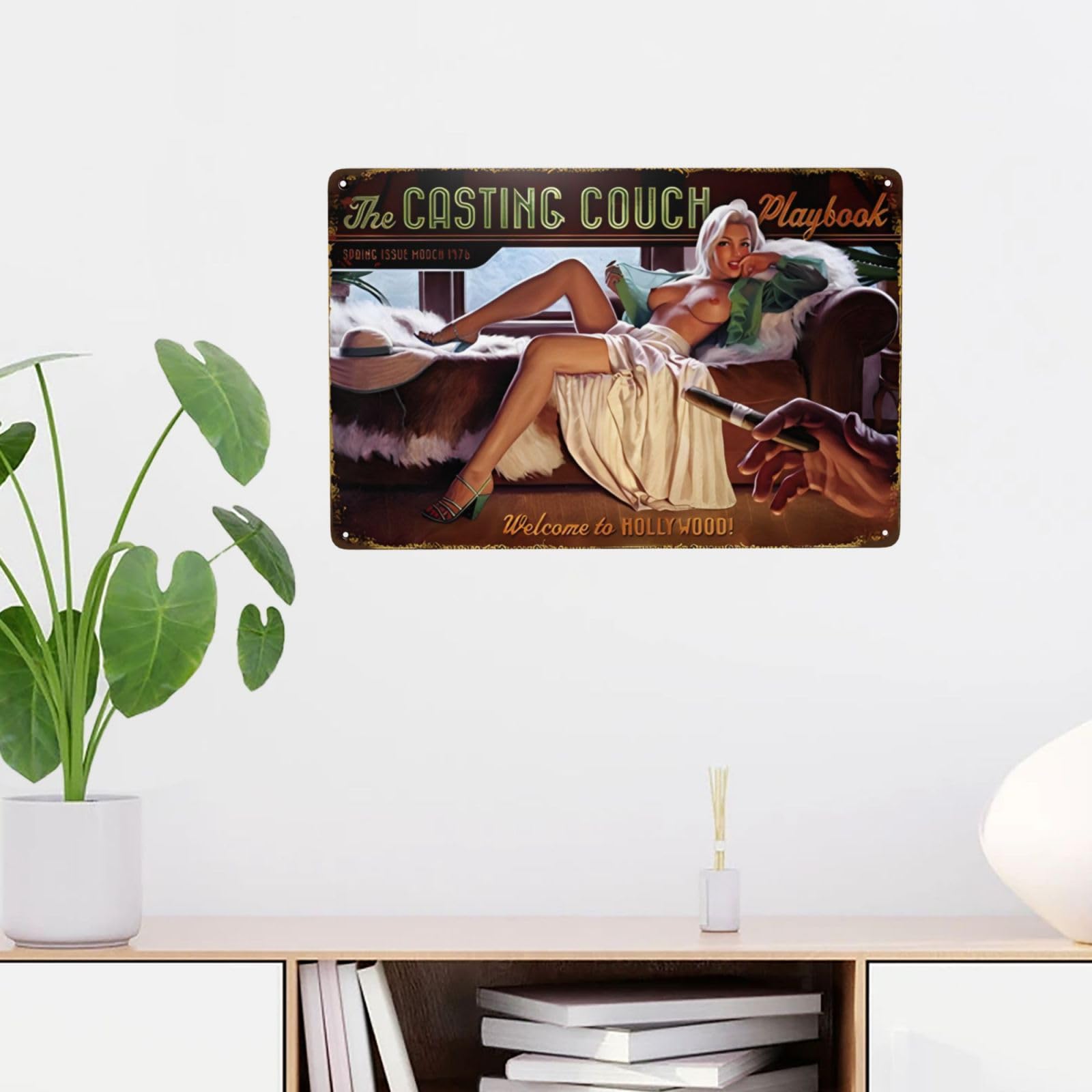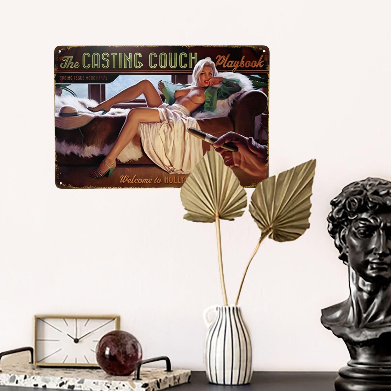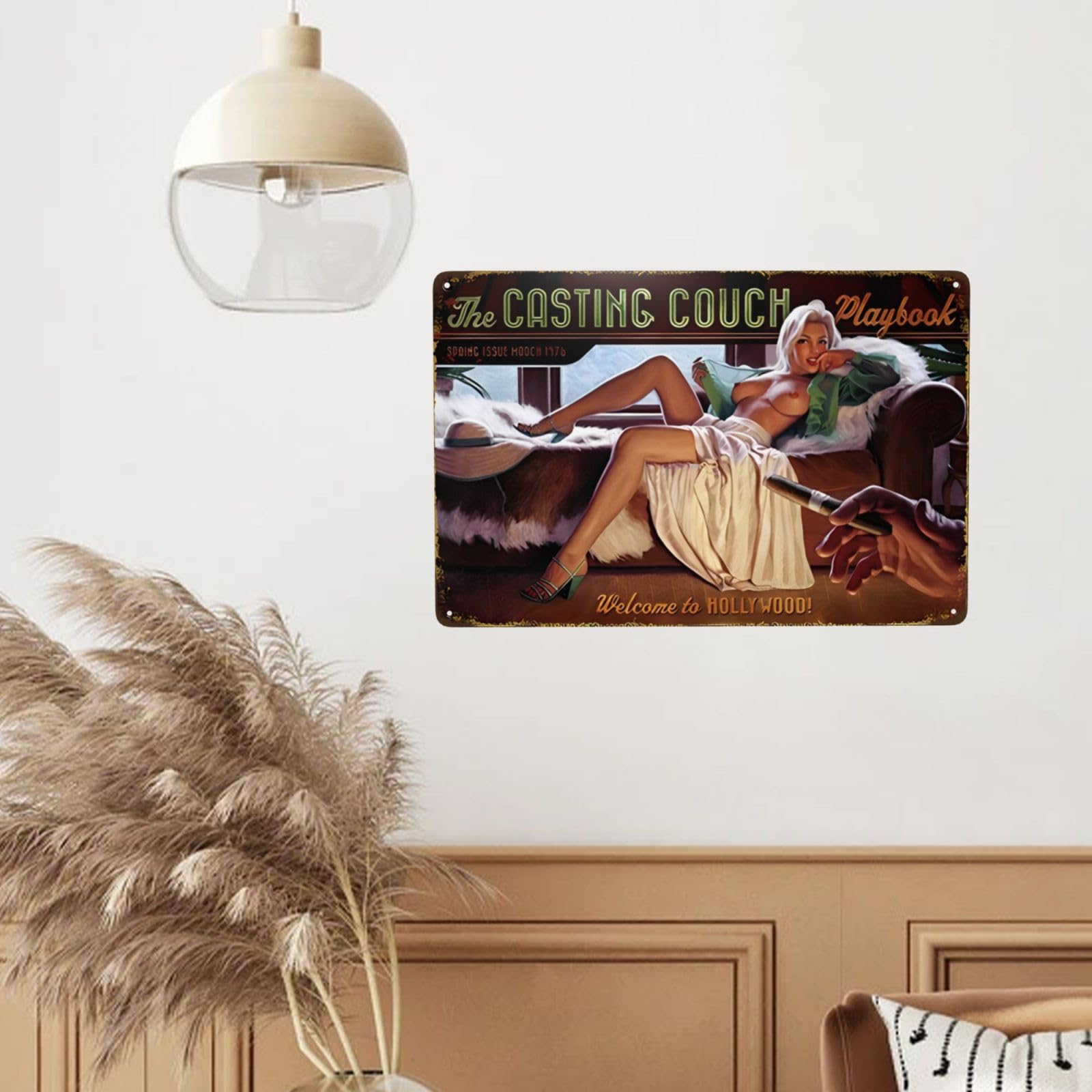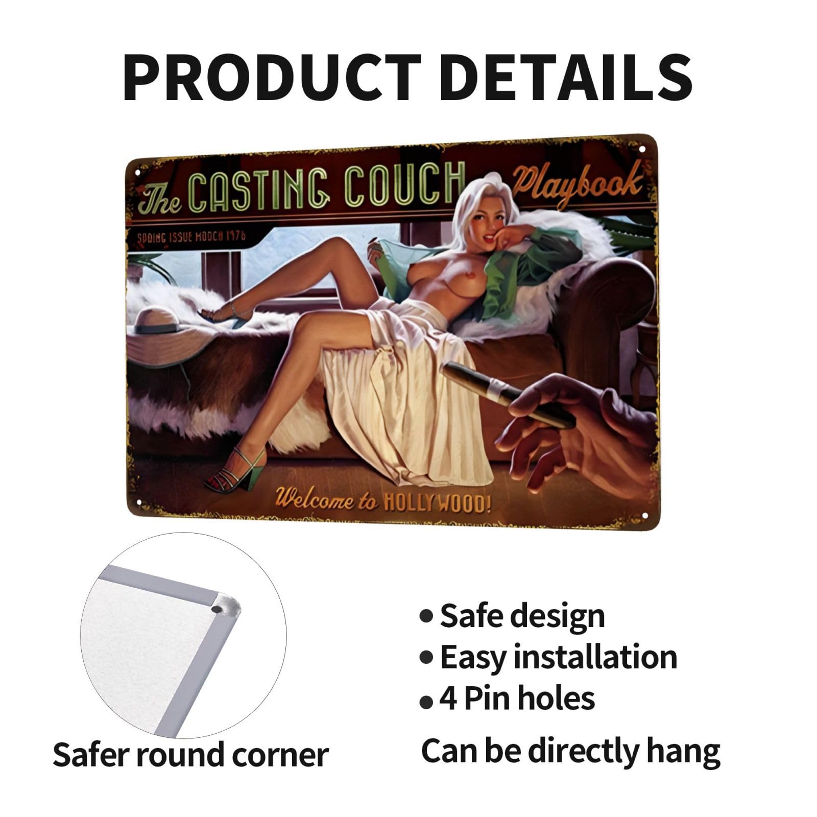 This metal sign features a sexy girl poster design, Elevate the ambiance of your man cave, bar, garage, pub, hotel, or any space with this eye-catching wall art decor