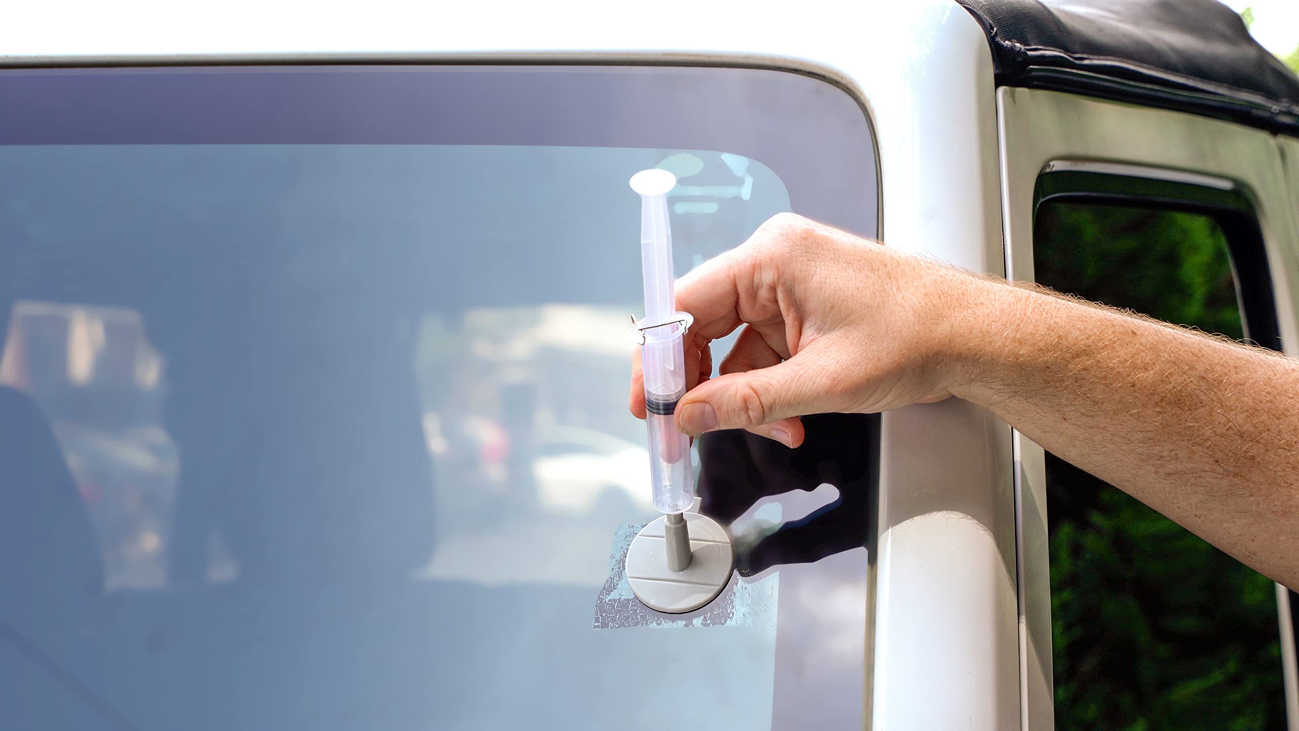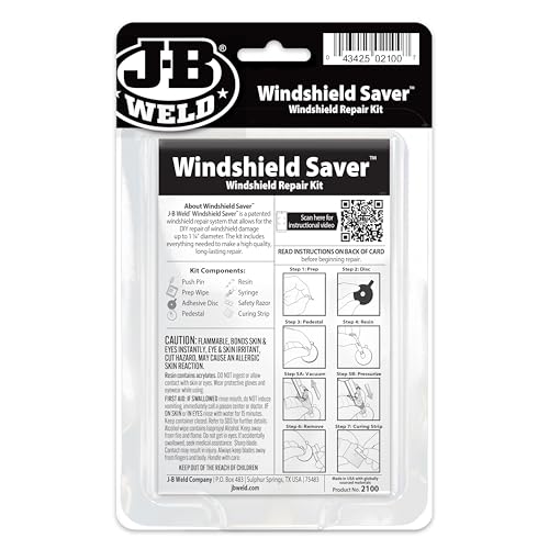 J-B Windshield Saver is a patented windshield repair system that allows for the DIY repair of damage such as "bullseye", "star", and "stone chips" up to 1-1/4" diameter. The single component resin, along with the pressure lock controlled pedestal and syringe system, allows for evacuation of existing air in the windshield cracks and penetration of the resin to fill the voids with a clear, sun activated, fast curing, acrylic resin.