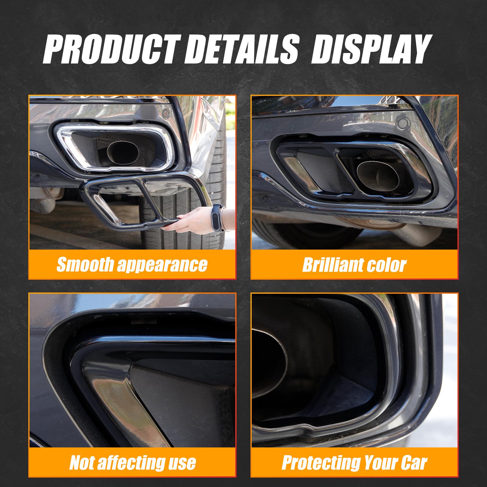 🚙【Protection】The rear muffler exhaust pipe output cover can protect your car from scratches by small stones. Cover existing scratches. The cover is sturdy, rust-free, and scratch-resistant, ensuring maximum strength and durability for long-term use.