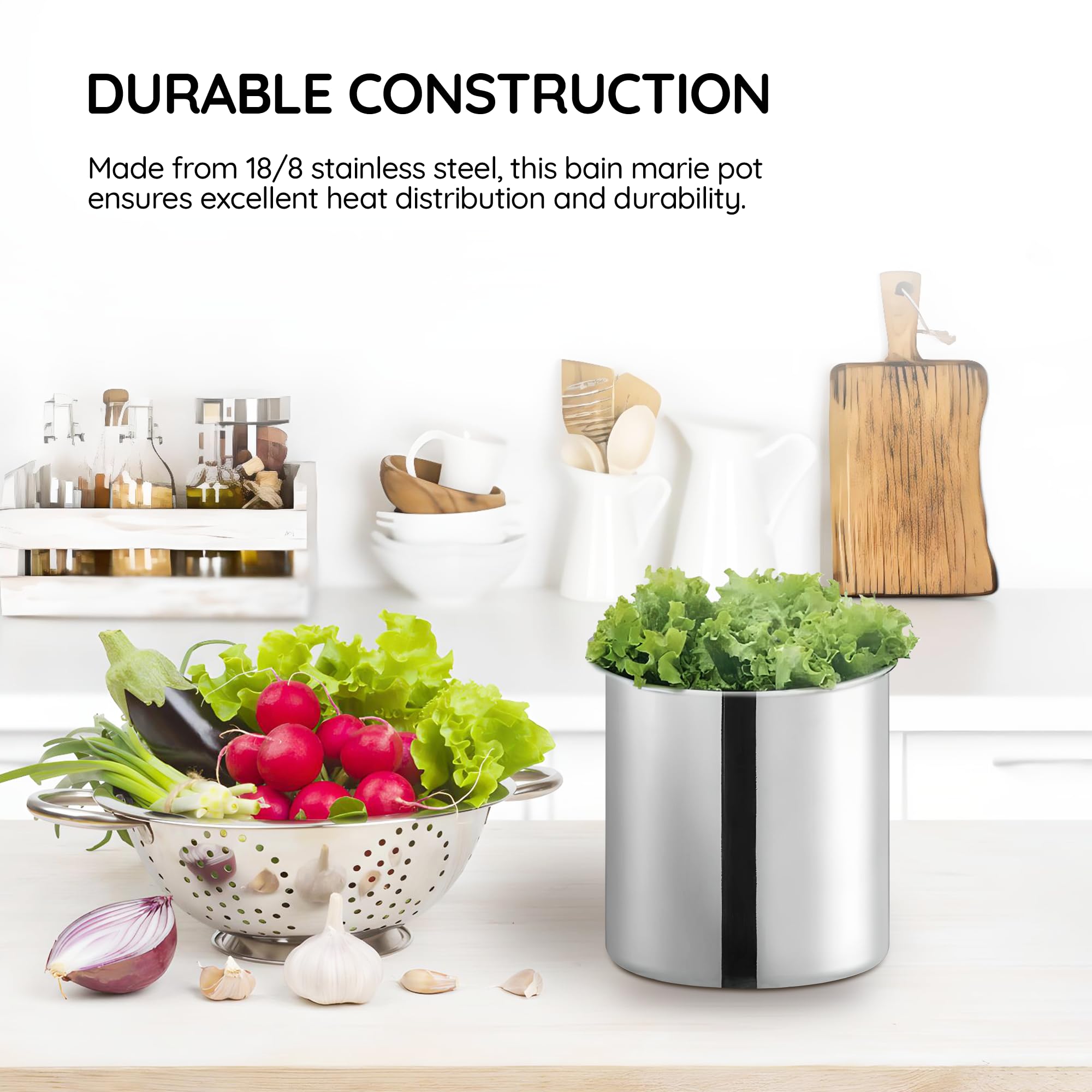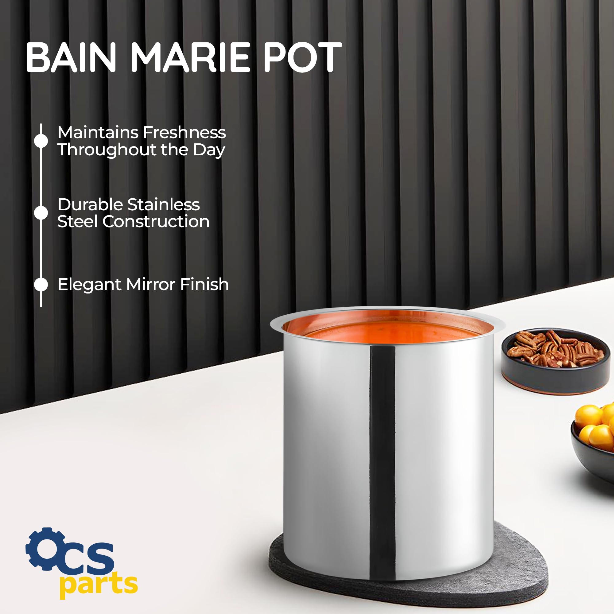 Maintains Freshness Throughout the Day: This bain marie pot is designed to keep your food fresh and at the ideal serving temperature all day long. Perfect for sauces, soups, and a variety of other dishes, ensuring your customers always receive the best quality.