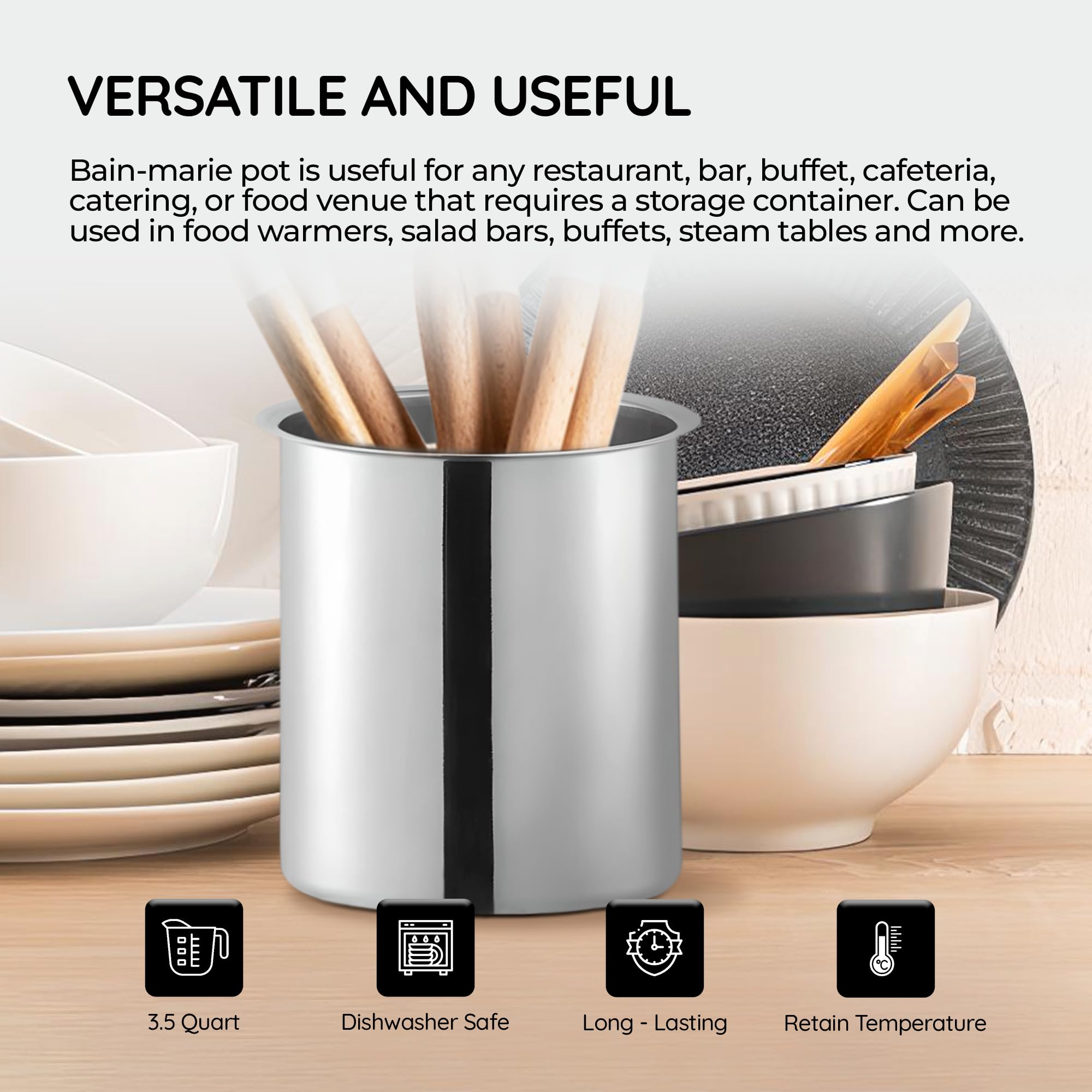 Versatile Use in Various Settings: Whether used alone or in combination with soup warmers, salad and buffet bars, or steam tables, this pot adapts to your needs. It is ideal for both hot and cold temperature retention, making it a versatile addition to any kitchen.