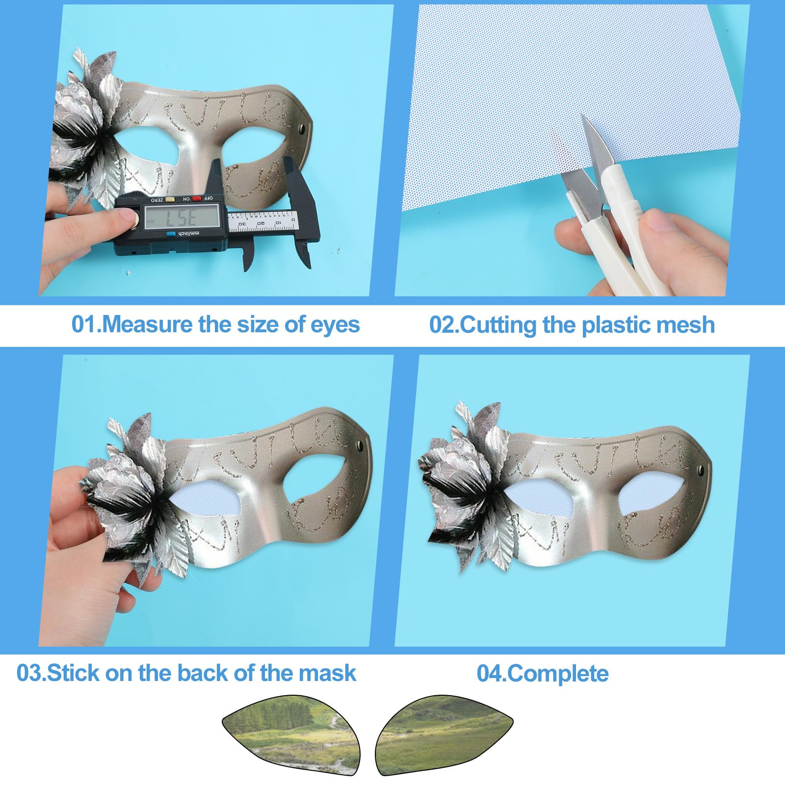 Easy to Use: Whether you are making furry eyes or art, these eye mesh are easy to cut according to your project needs. After cutting, just stick it on the mask. It is very suitable for beginners and experienced users.