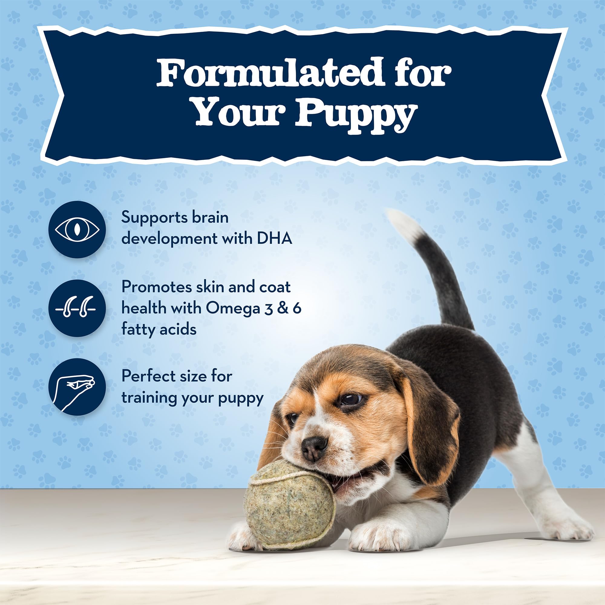 REAL CHICKEN FIRST: Baby BLUE Training Treats are made with delicious real chicken as the first ingredient, plus DHA for cognitive development, making them the ideal reward for your puppy’s best behavior