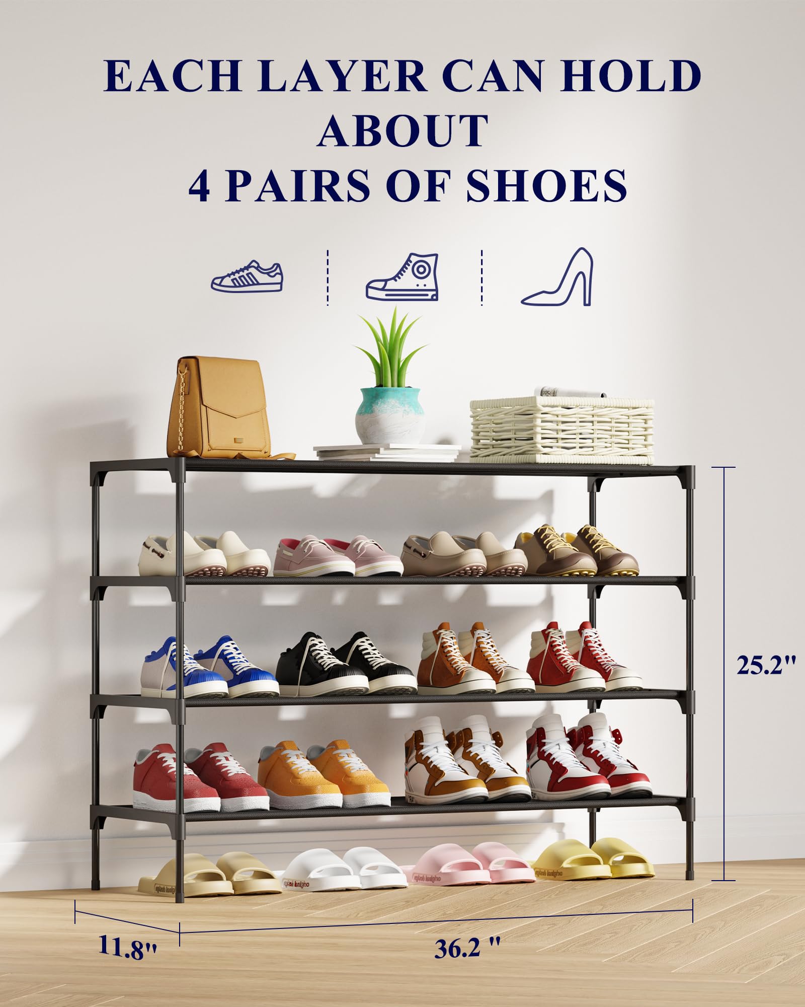 MATERIAL: Made from metal tubes with plastic frames. The non-woven fabric shelves protect footwear from scuffs while preventing dust from falling through layers, keeping your collection clean and well-maintained.