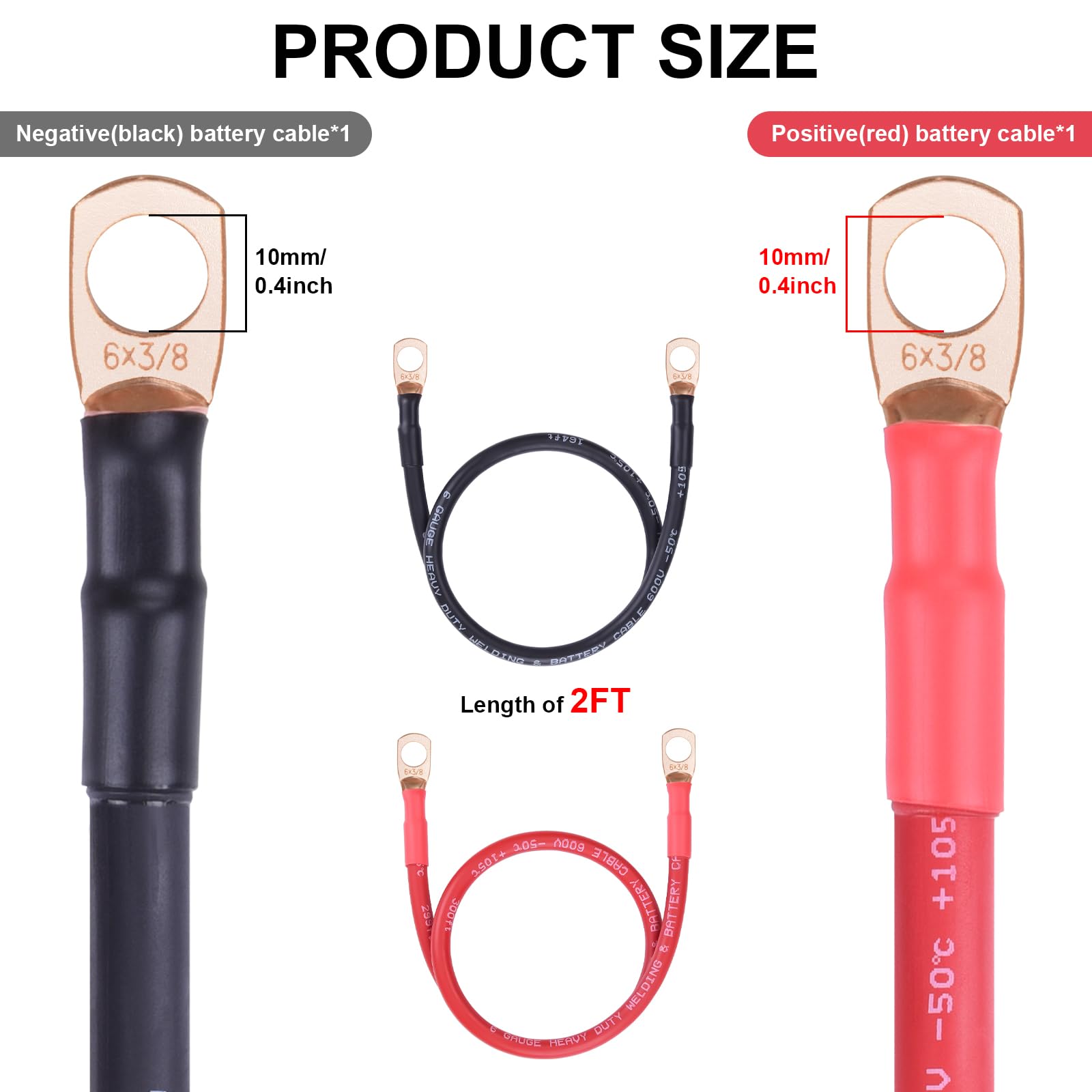6 Gauge Wire Pure Copper Battery Power Cables with 3/8”Lugs for Automotive Solar Panel Inverter Trolling Motor RV Marine,Replacement Parts & Accessories