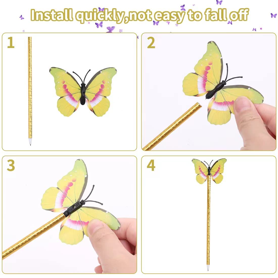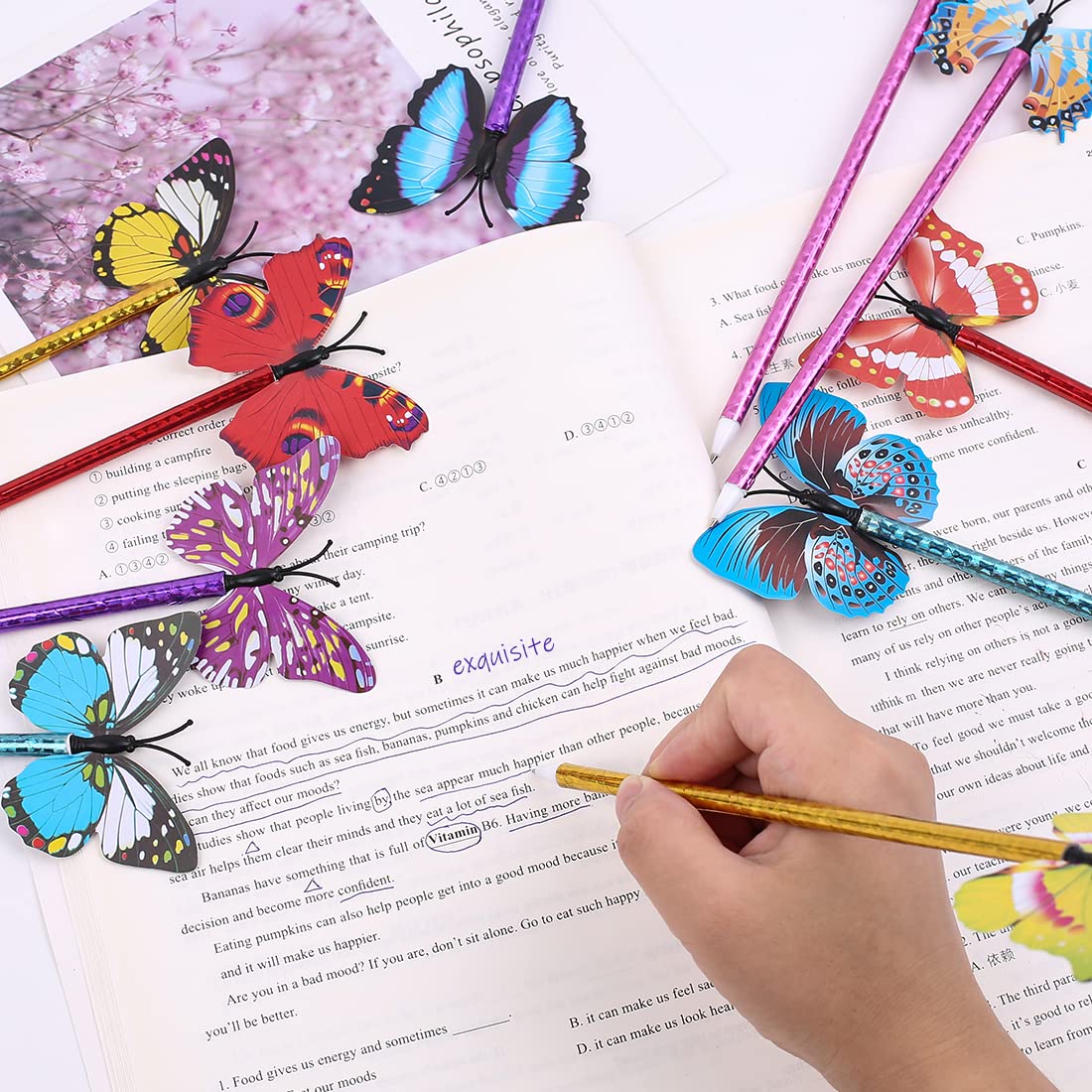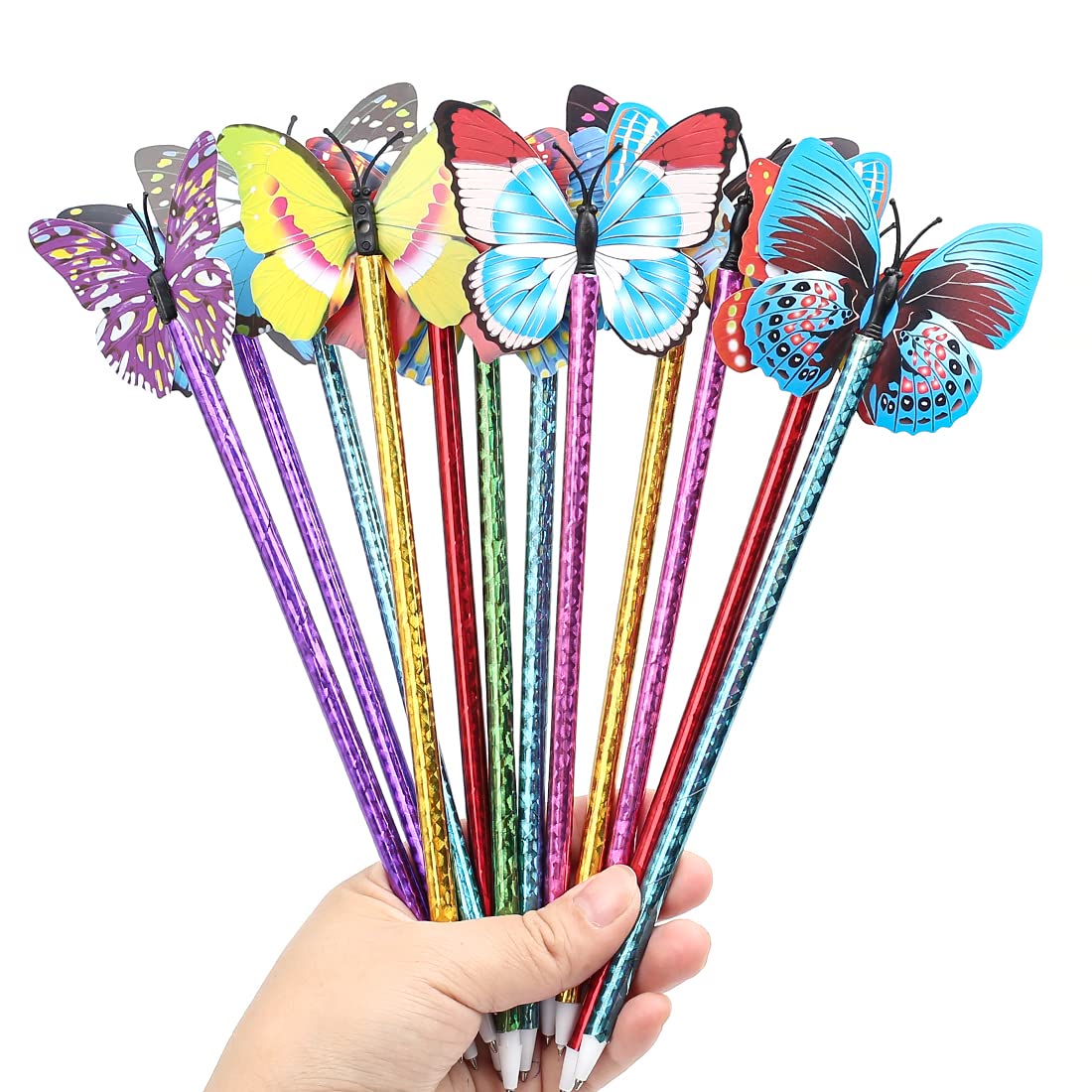 Features Designed for users aged 14 and above, suitable for office and professional environments Lightweight and portable for everyday use Unique butterfly design with randomly assorted patterns, adding subtle style to writing Specifications Quantity: 12 pens with random butterfly designs Colors: Yellow, Purple, Blue, Rose Red, Orange, Green Refill: 0.5mm black ink Material: Plastic Package includes 12 x ballpoint pens