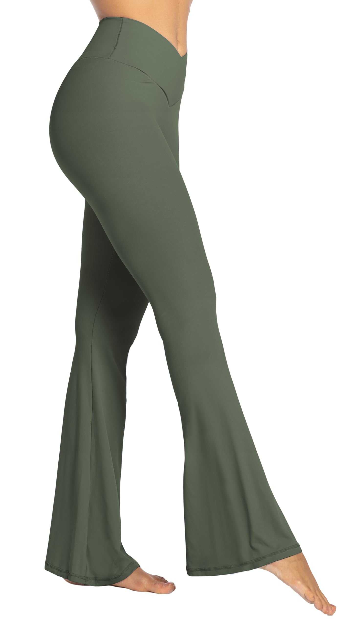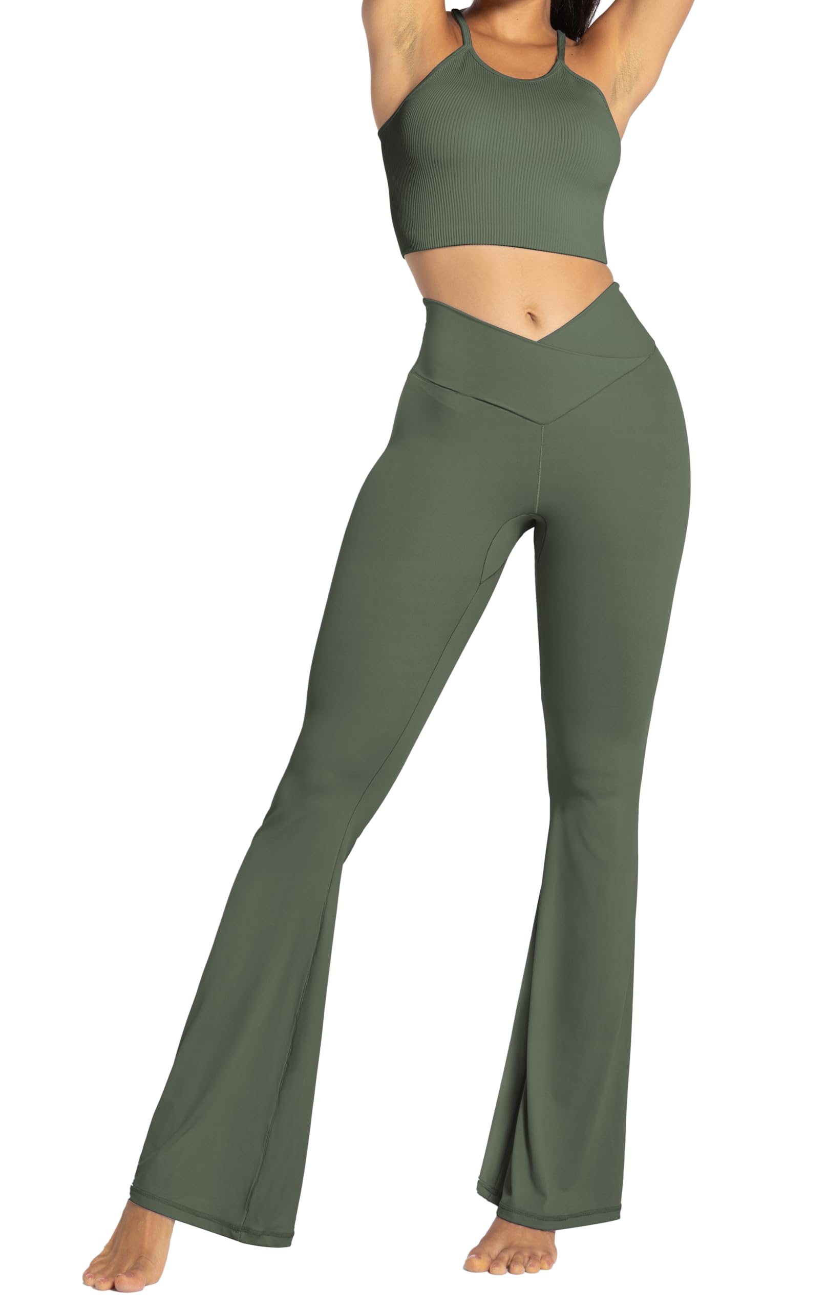 [Crossover Waistband] The flare legging is designed with crossover waistband and V seam that gives you a flattering fit.