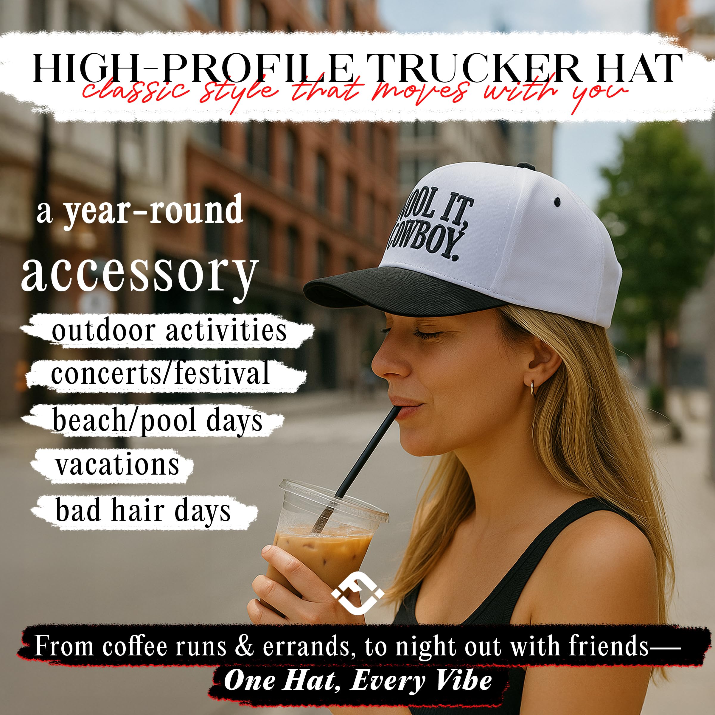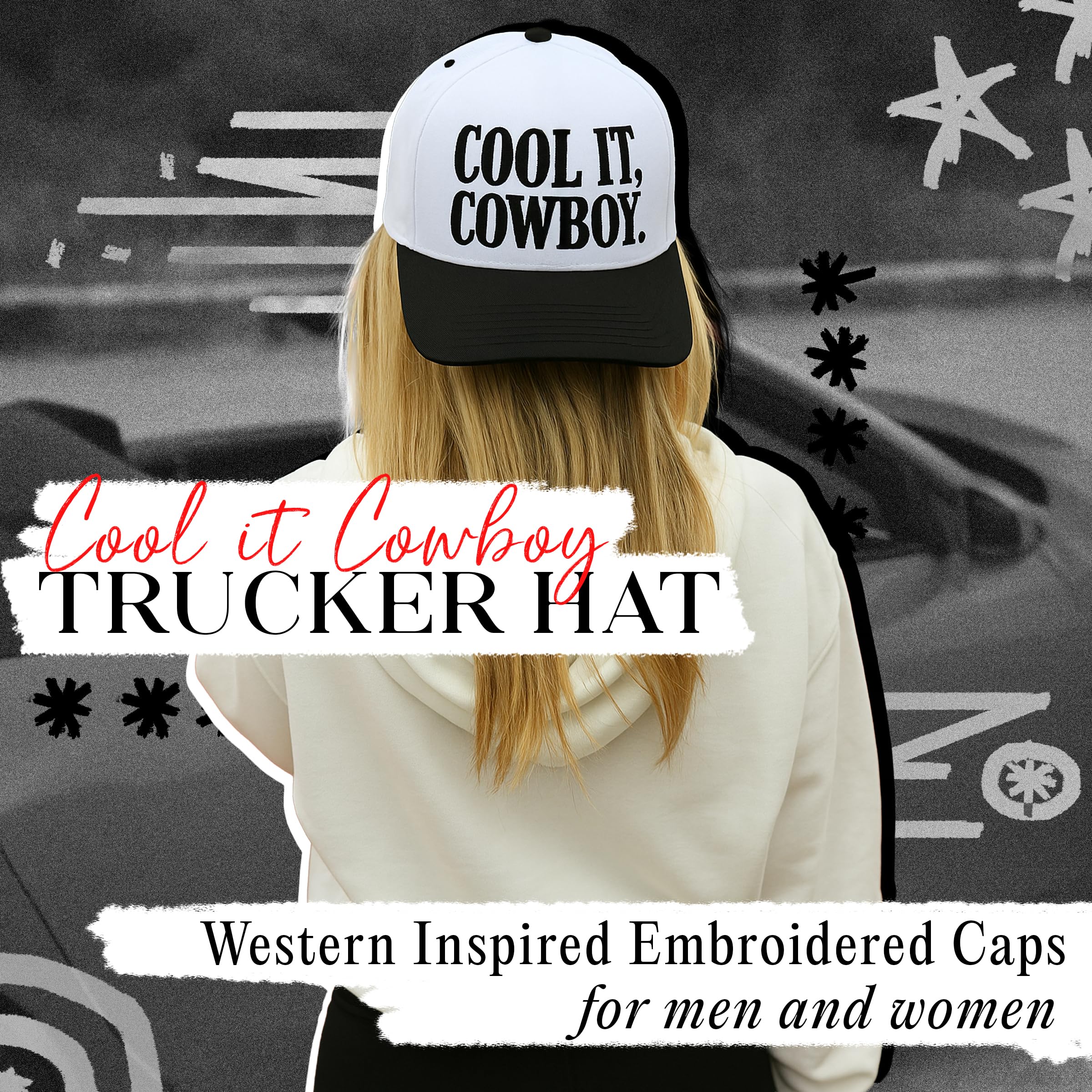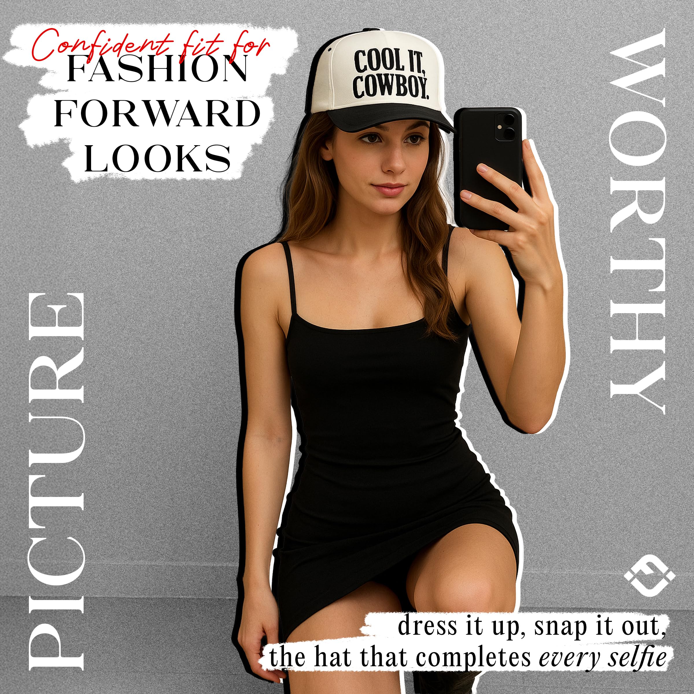 VERSATILE ACCESSORY: This trucker hat for women is the perfect accessory for any event, ideal for casual daily wear or outdoor activities. The snapback ensures a secure fit, making it a great choice whether you're at a music festival or in a casual work environment.
