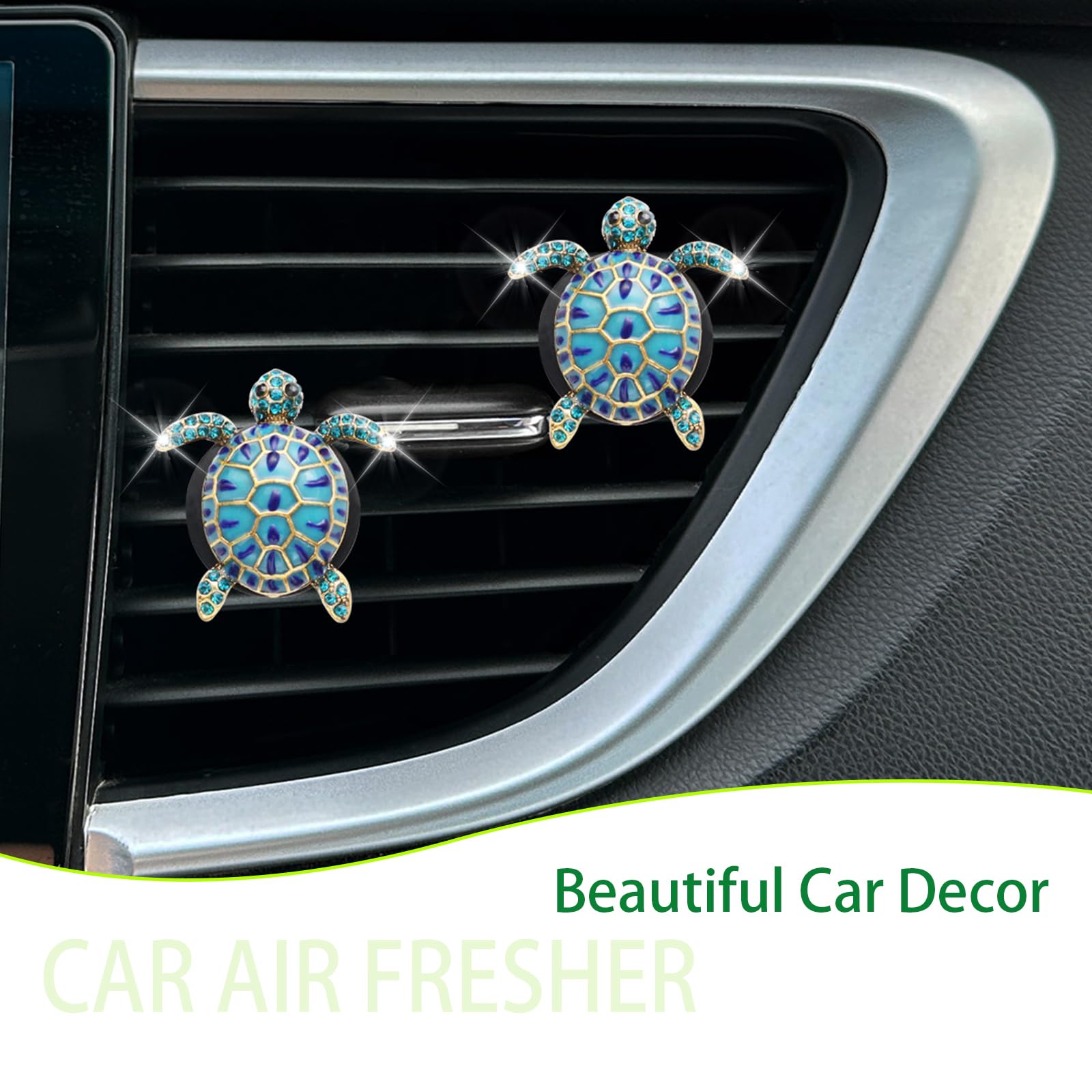 Eye-Catching Design: Adorned with shimmering blue rhinestones, this turtle car vent clip catches the eye with its dazzling design. It brings a sense of luxury to your car interior, making every drive a sophisticated experience.