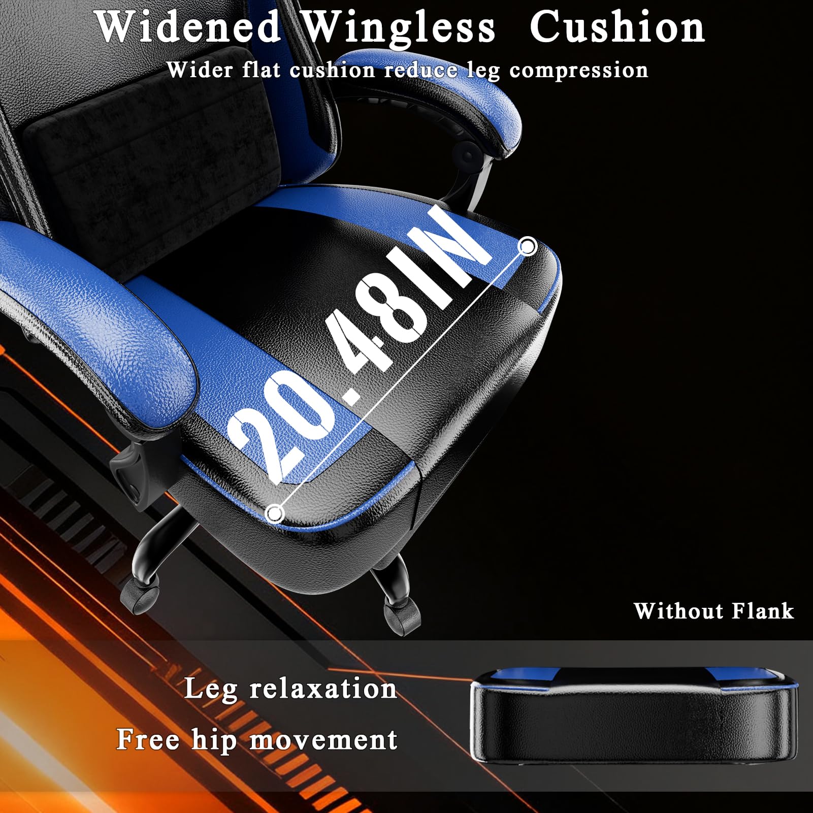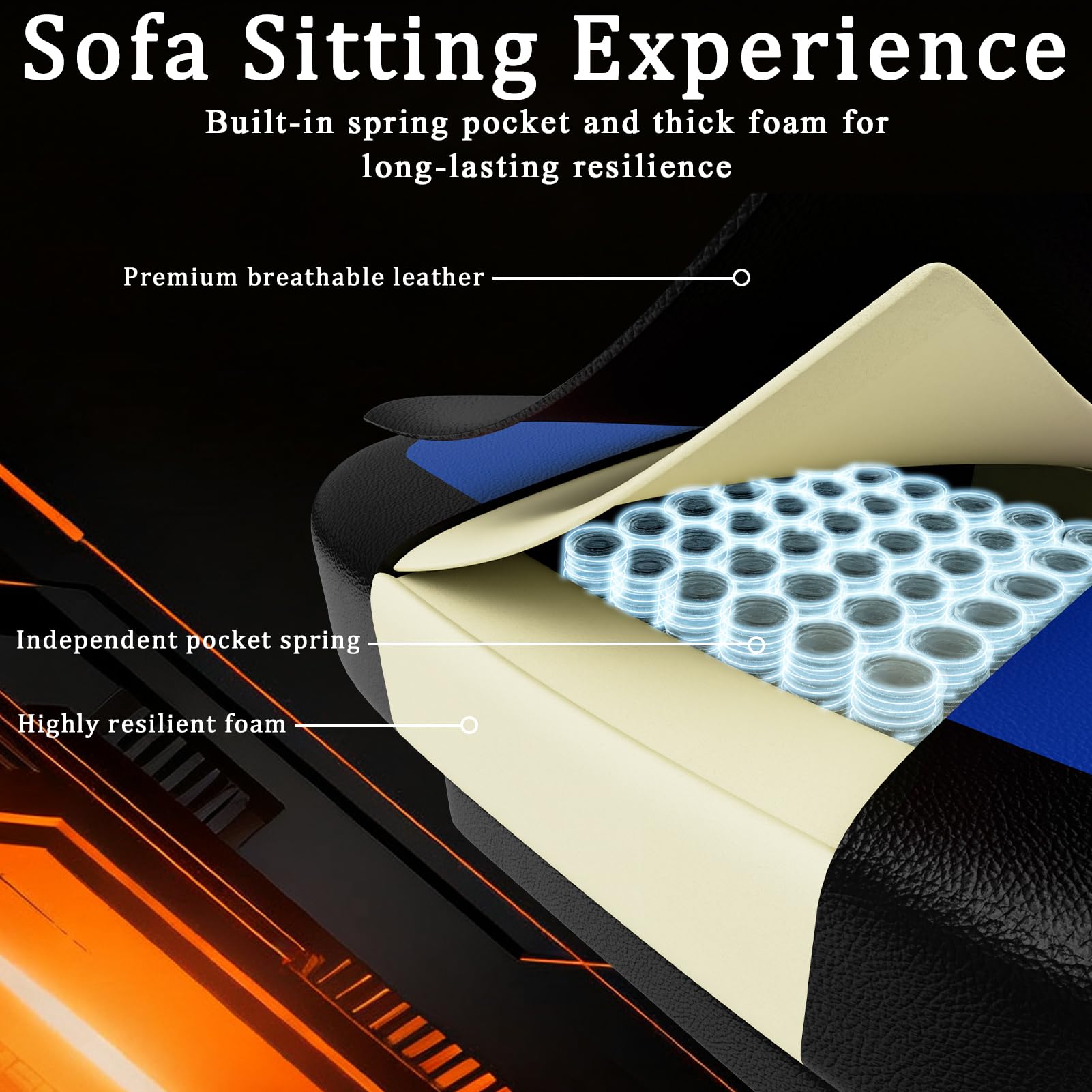 Premium Pocketed Springs For Sofa-Like Comfort: Our gamer chair features the same individual pocketed springs as a luxury sofa, with high-density resilient foam that won't sag even after extended use. The wingless seat design eliminates pressure on your thighs, while the breathable, skin-friendly PU leather keeps you warm in winter and cool in summer. Say goodbye to numb legs and sweaty backs! No more squirming in your seat!