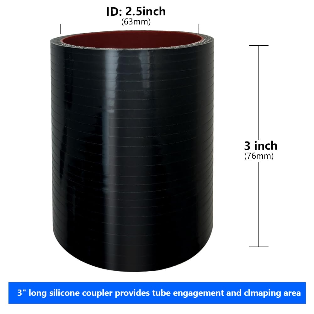KDP Standard Straight Silicone Hose Coupler with 2 SS304 Worm Clamps 1.KDP Silicone Straight Hose Will be Sent to You with two Worm Clamy, You will Have no Need to Buy extra clamps. 2. KDP Straight Coupler Hose is Made a Standard Length of 3" (76.2mm) to Provide Proper Tube Engagement and Clamping area. 3.Thickness :5mm /.2" . KDP Hose Coupler is Made of New Silicone Material with 4 Ply Heat-resistant Embedded Fibers Reinforced, 4.Which is Perfect for Heavy Duty Applications.5.150 PSI Max Pressure Rating/Temperature rated to 350F °or 180C°. 5 .KDP Silicone Hose Coupler is Universal Application for Straight Connecting Intake pipes, Radiator pipes , Intercooler Pipes etc Notice: Oil or Fuel Will Reduce the Lifetime of the Silicone hose, Please Avoide Oil when Using Our Striaght Silicone Hose. We prepare the Worm Clamps So That You don't Need to Buy Extra clamps for Most of the Operating Environment.But If You Use It As a Turbo Charger Hose, It's Better to Lock it with T Clamp.