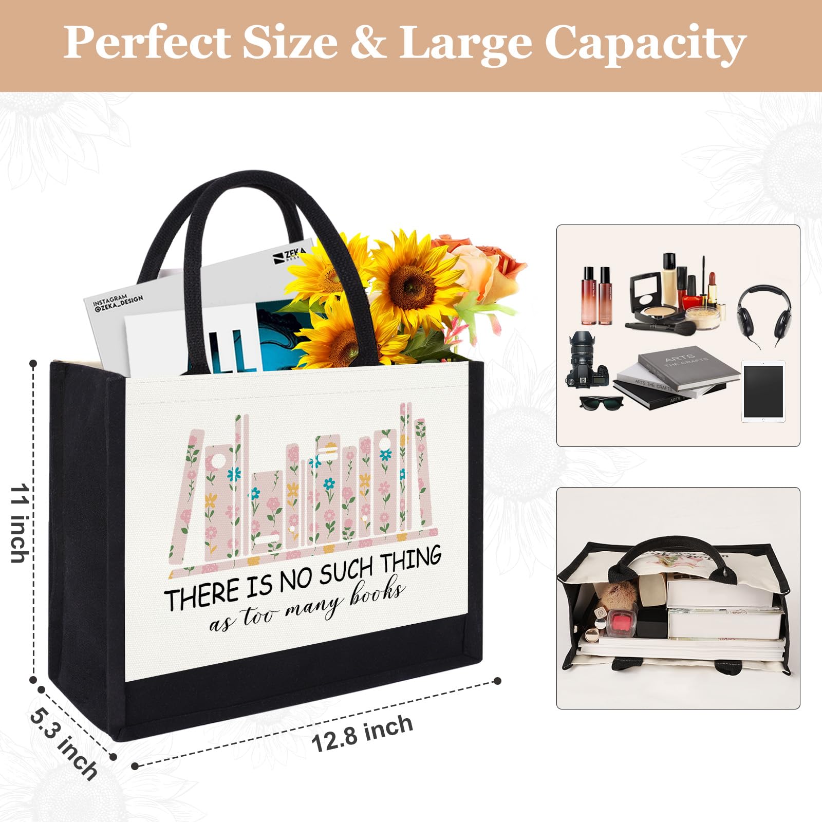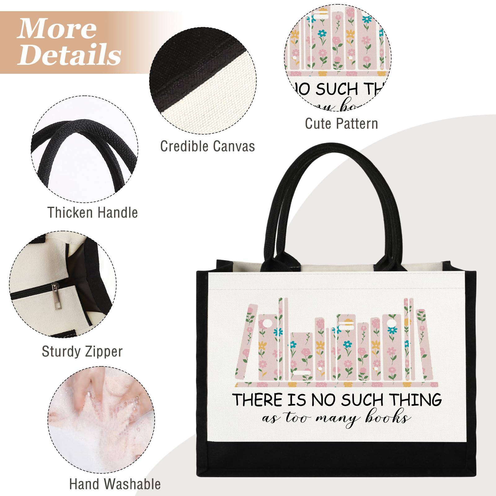 【Unique Canvas Tote Bag】Our women tote bag features a adorable book printing, We use advanced printing technology to ensure that the book prints on our tote bags are vibrant, long-lasting, and fade-resistant, even after multiple washes and uses. Best bookish gifts for book lovers, suitable as a gift for best friends, sisters, mom, daughter, niece, coworkers, granddaughter who loves to read.