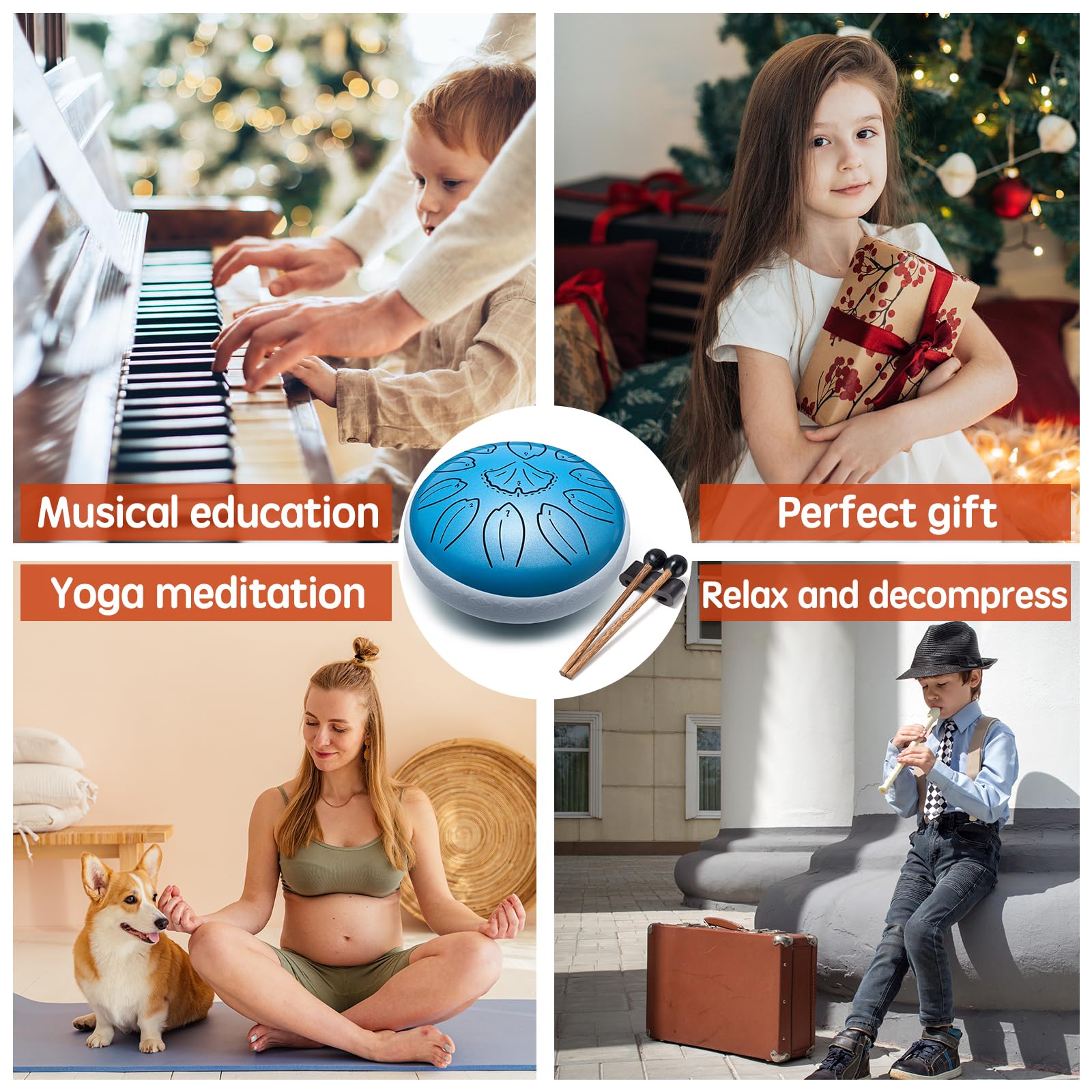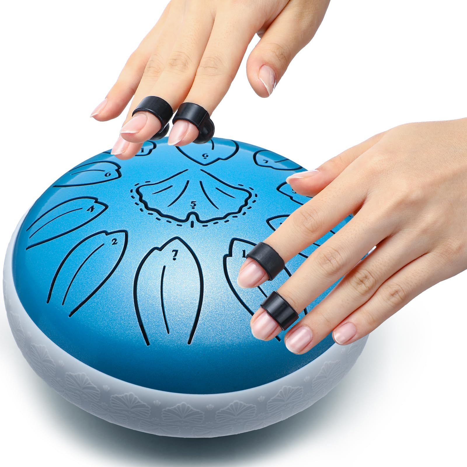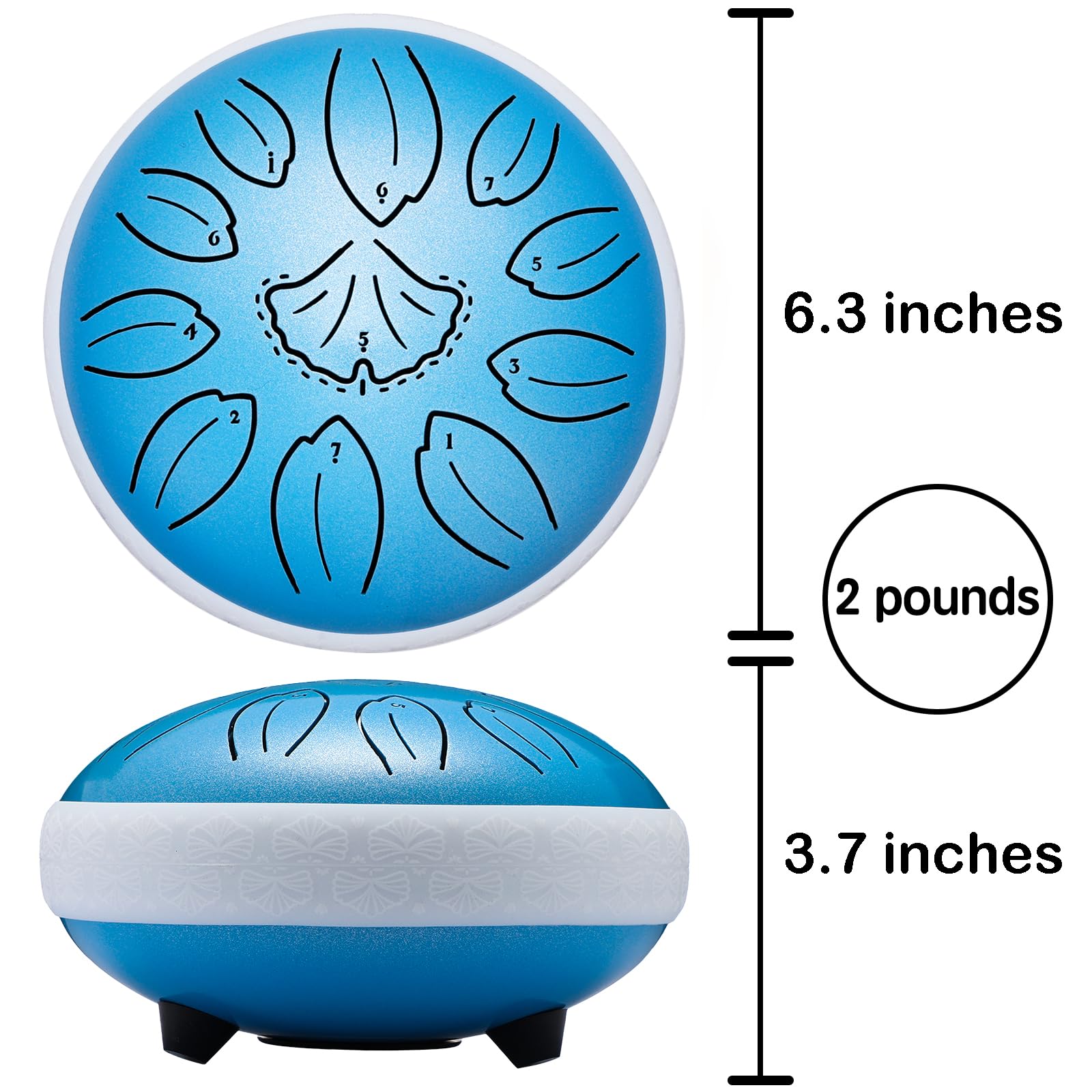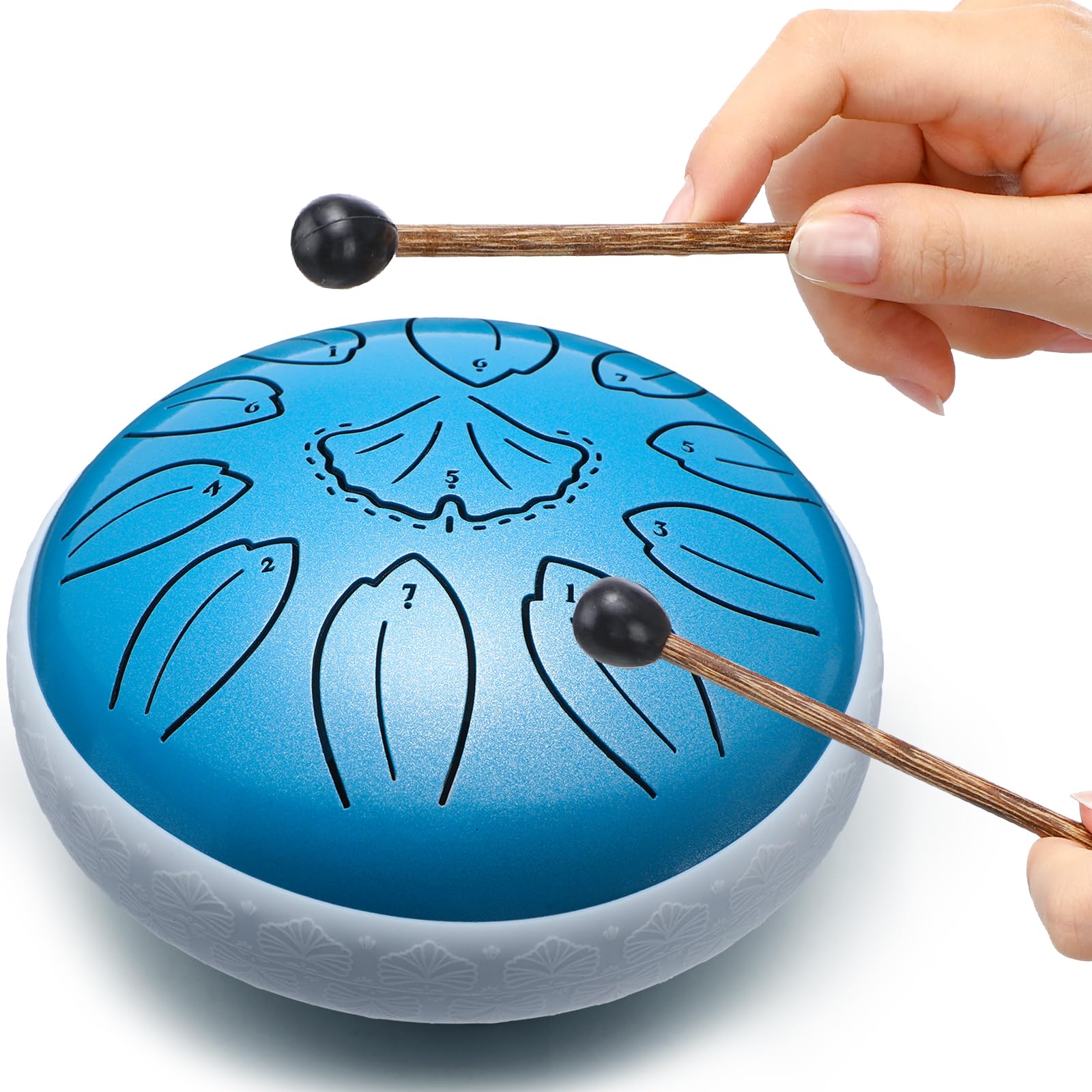 Lronbird Steel Tongue Drum Percussion, 6 Inch 11 Notes Musical Instruments, Music Gifts for Family Friends (Blue)