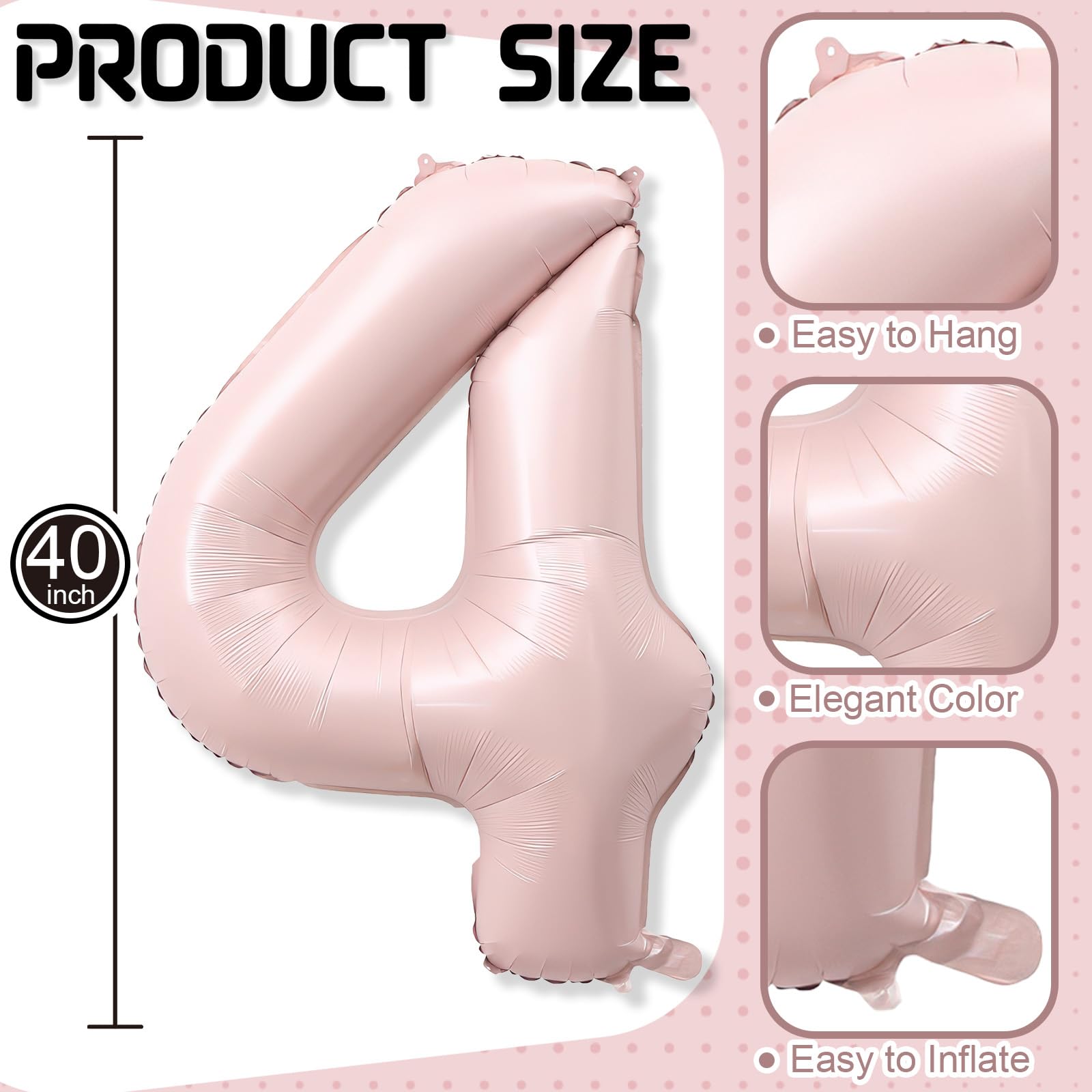 【Premium Quality Material】: Made from high quality aluminum mylar, this big blush pink number 4 balloon is long lasting and resistant to tearing, ensuring long lasting enjoyment throughout your event. Made from non-toxic materials, this pale pink 4 balloon is safe for all ages, providing peace of mind while adding a fun and festive touch to your event. It also maintains its shape well, whether inflated with air or helium.