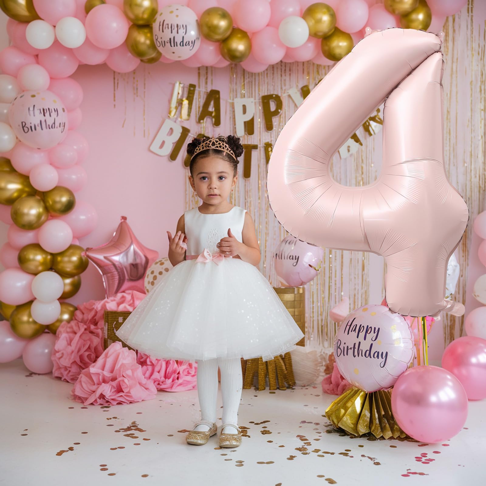 【Versatile Decoration for Various Events】: Ideal for 4th birthday party, weddings, anniversary, graduations, baby shower, New Year's Eve parties, housewarming party, retirement celebrations, holiday party, gender reveal party and other celebrations. This pastel pink number four balloon can be paired with other numbers to form the perfect combination for any milestone celebration, such as a 4 year old birthday, sweet 16, or a retirement party.