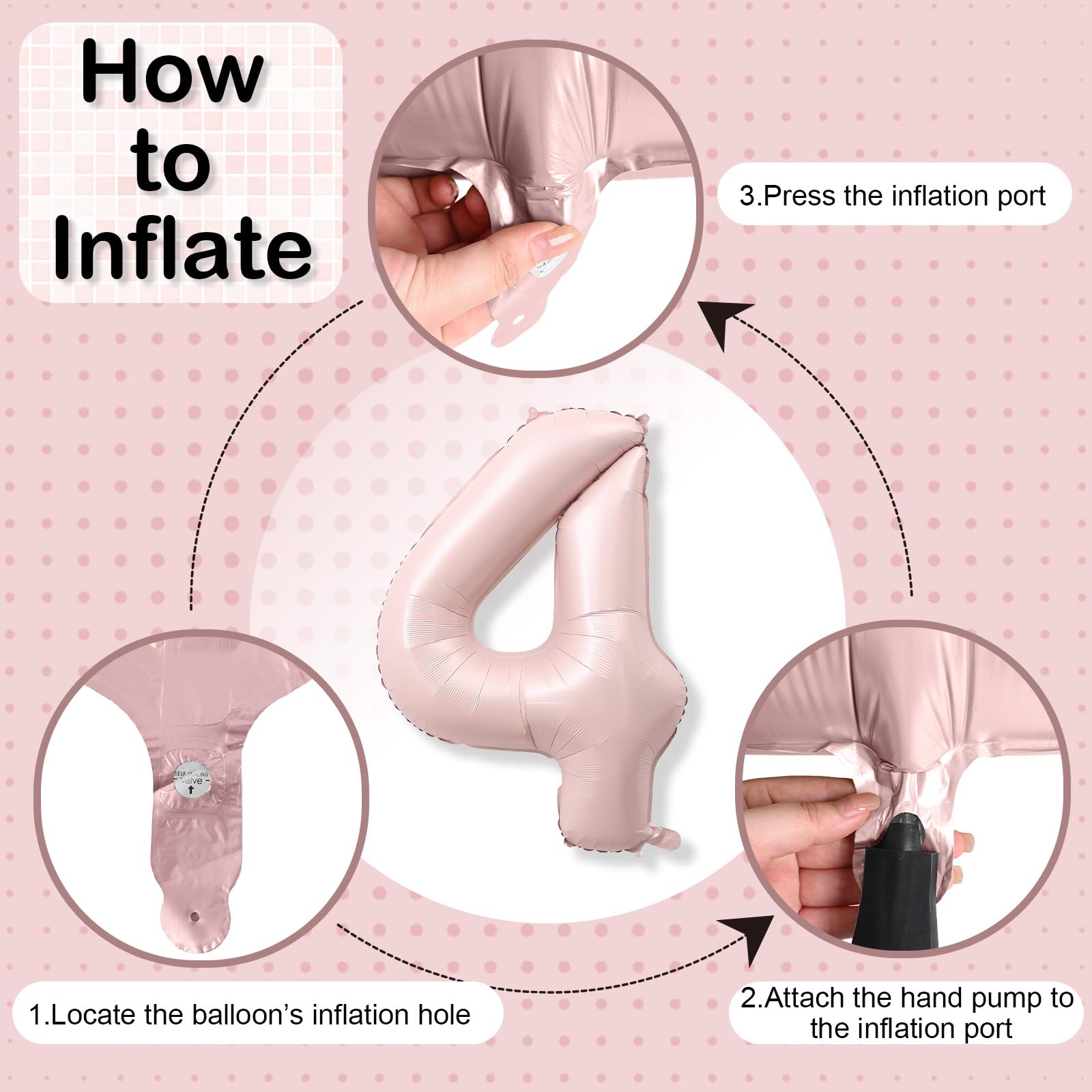 【Easy Inflation & Setup】: The light pink giant number balloon is designed for quick and easy inflation with either helium or air. It features a self inflating valve for convenient use, allowing you to quickly set up and enjoy the decorations without any hassle. For optimal use, inflate the balloon to 90% capacity only to prevent over-inflation and bursting.