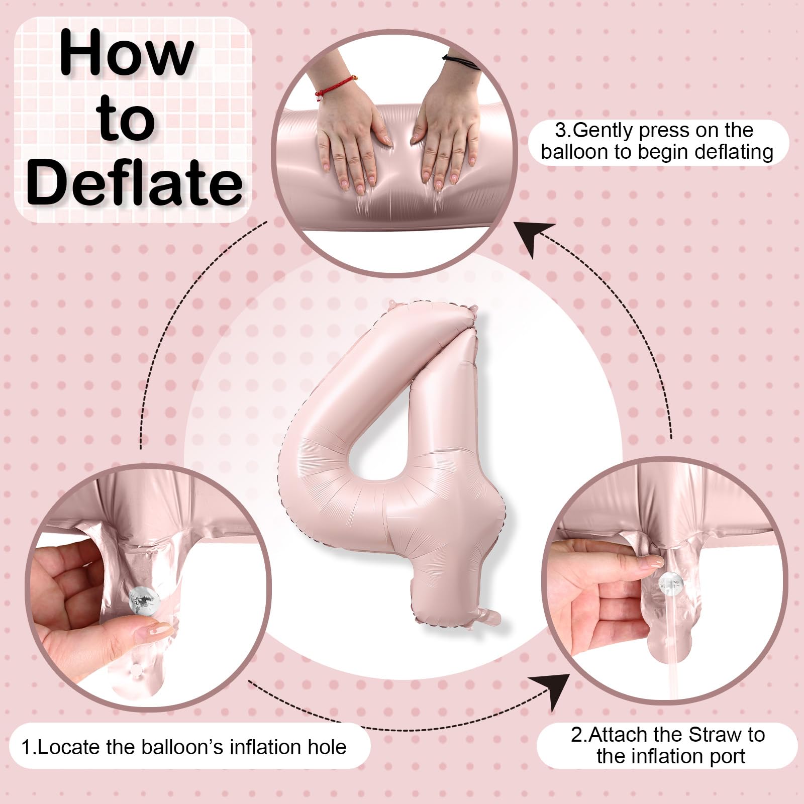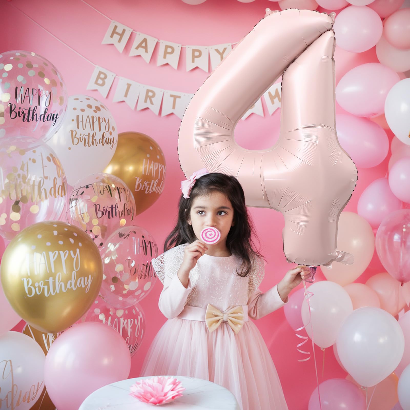 【Number 4 Balloon】: This 40 inch baby pink number foil balloon comes as a complete set, including one balloon numbers and a straw for easy inflation. Its large size ensures it stands out at girls or kids party, creating a visually striking focal point to make your special occasion even more memorable.