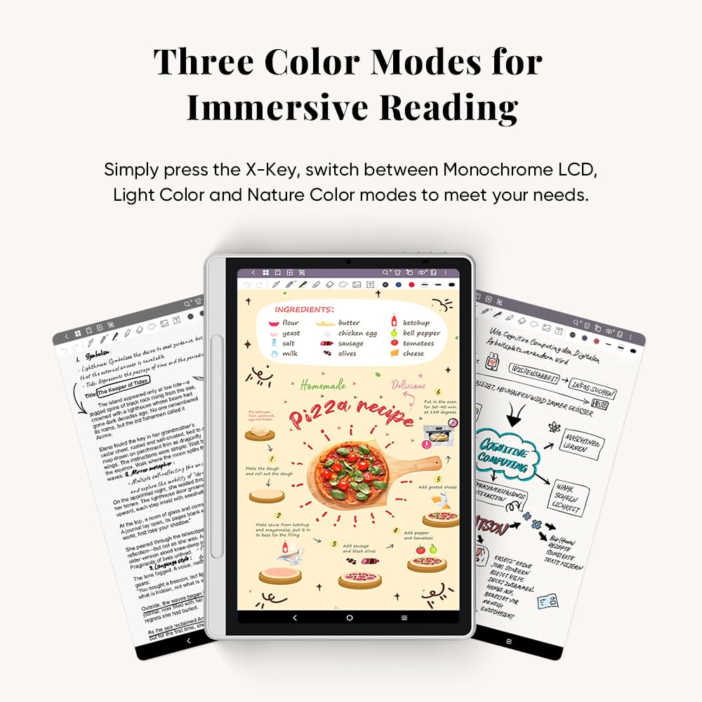 Please Note: It is NOT an e-ink Tablet, it is a Normal Android Tablet. The XPPen digital notetaking tablet comes with an X-key, you can choose between Monochrome LCD, Light Color, and Nature Color modes with one press. 3 color modes can meet all kinds of needs