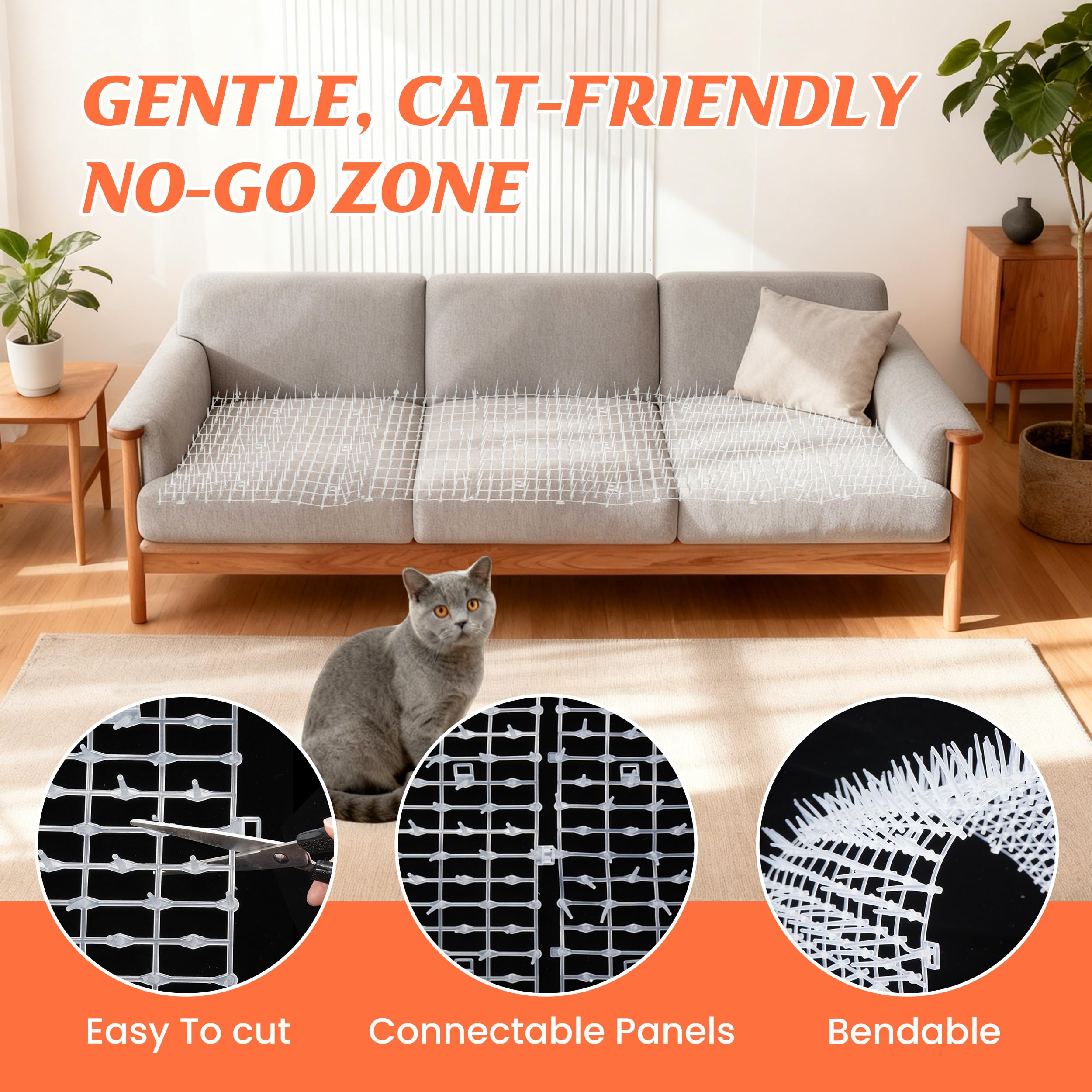 【Humane Plastic Spikes】 – No Shocks, No Sprays – Soft, rounded plastic spikes feel uncomfortable under paws without hurting your cats, small dogs or other pets. There are no electric shocks, training beeps or strong-smelling sprays – just a gentle cat deterrent mat that teaches clear “no-go” zones.