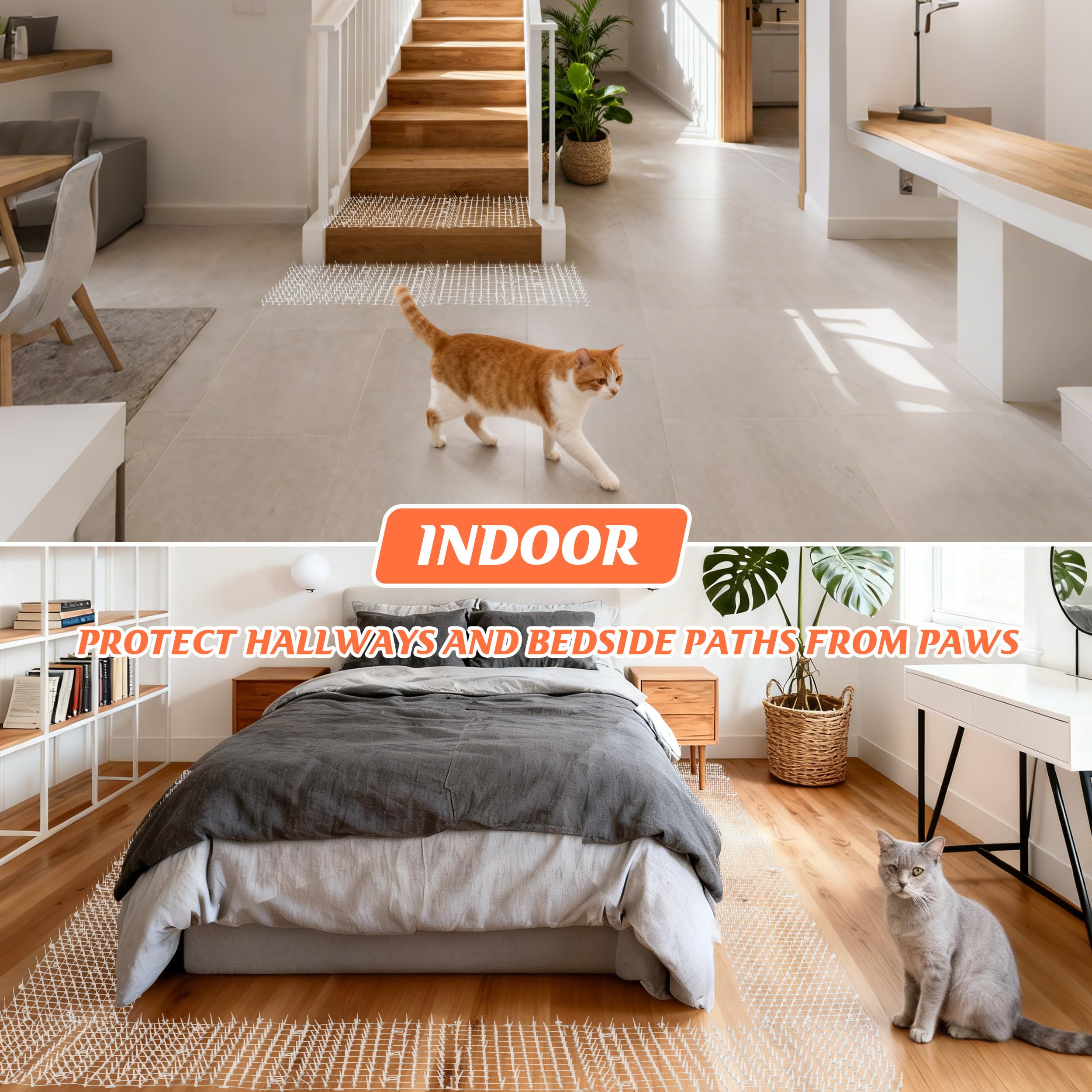 【Durable, Weather-Resistant & Easy to Clean】 – Made from sturdy, odor-free PP plastic, this clear cat deterrent mat stands up to everyday indoor use and outdoor weather. Lay it on sofas, window sills, balcony rails or in the garden, then simply rinse with water and let it dry to use again.