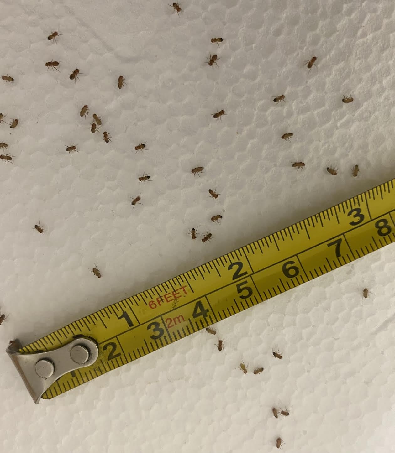 Wingless D. melanogaster fruit fly culture (24oz container). Wingless fruit flies are ideal feeder insects for small or young animals. Unlike crickets or other typical feeder insects, fruit flies cannot bite or harm your pet. They are incredibly easy to maintain and reproduce quickly. Under ideal conditions and proper maintenance, a single 24oz culture can produce a couple thousand flies! Adult flies are great feeders for: Fish, baby Lizards, small frogs, praying mantis nymphs, spiderlings, and many more! Size: Healthy adult fruit flies are typically just under 1/8 of an inch long (refer to the last two photos of this listing) Life cycle: Fruit flies undergo complete metamorphosis. They begin life as eggs which, within 24 hours of being laid, will hatch into larvae called maggots. Maggots feed on and live within the media provided at the bottom of the container. They remain in the media until ready to pupate. At this point, the larvae will crawl to the sides of the container and on the wood shaving substrate to pupate. They will remain in their pupal stage for about 5 days. Pupae will change from a light brown/ golden color to transparent (you can see the fly inside!) When they are ready to eclose (emerge as an adult from a pupae). Newly emerged adult flies are sensitive and shouldn’t be handled for about an hour. In a couple of days, they will be ready to mate and lay eggs. Temperature/humidity: The life cycle progression of fruit flies, like other insects, is dependent on the temperature at which they are kept. While room temperature is ideal for maintaining flies, they can tolerate colder temperatures. If necessary, they can be refrigerated (NOT FROZEN) for about a week without inflicting any harm to the flies at any stage of life. Refrigerating the flies will cause them to be very sluggish or immobile until temperatures warm up. As a result, temporary refrigeration can be used to separate/transfer flies elsewhere. As long as there is adequate air exchange, and the media is properly hydrated, humidity isn’t a crucial factor. Media: The media provided is a potato-based proprietary modification of a commercially available type of fruit fly media. I supplement media with beetroot powder as this provides extra nutrients, like carotenoids, which have been shown to extend the lives of fruit flies as well as gives your pets (who eat the flies) better nutrition. Media should remain hydrated at all times. It should be smooth (like thick mashed potatoes), but never runny or sticky. Otherwise, adult flies will become trapped in the media and suffocate. If media is too dry, cracks may appear. Media that is not properly hydrated will delay the production of flies. To rehydrate, simply add water (slowly and little by little) until media appears smooth.