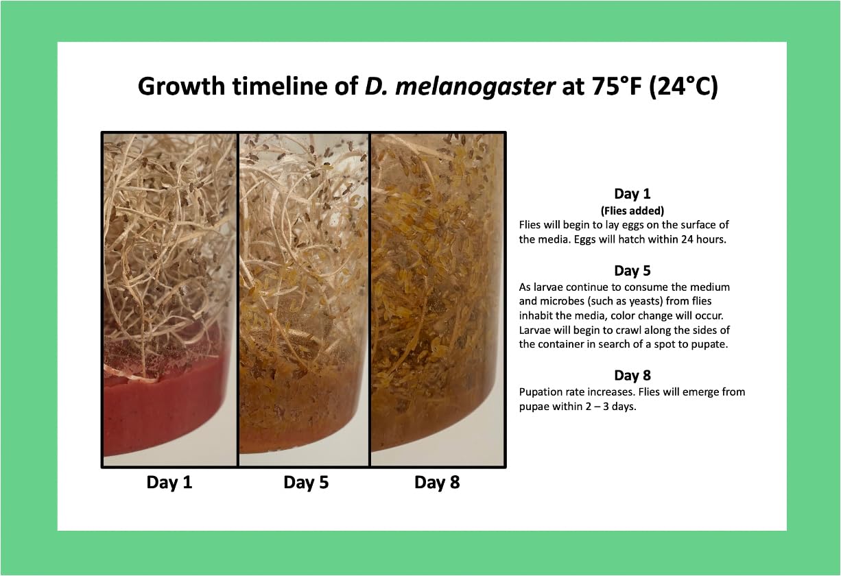 Culture will produce thousands of flies within 2 weeks (if maintained at room temperature).