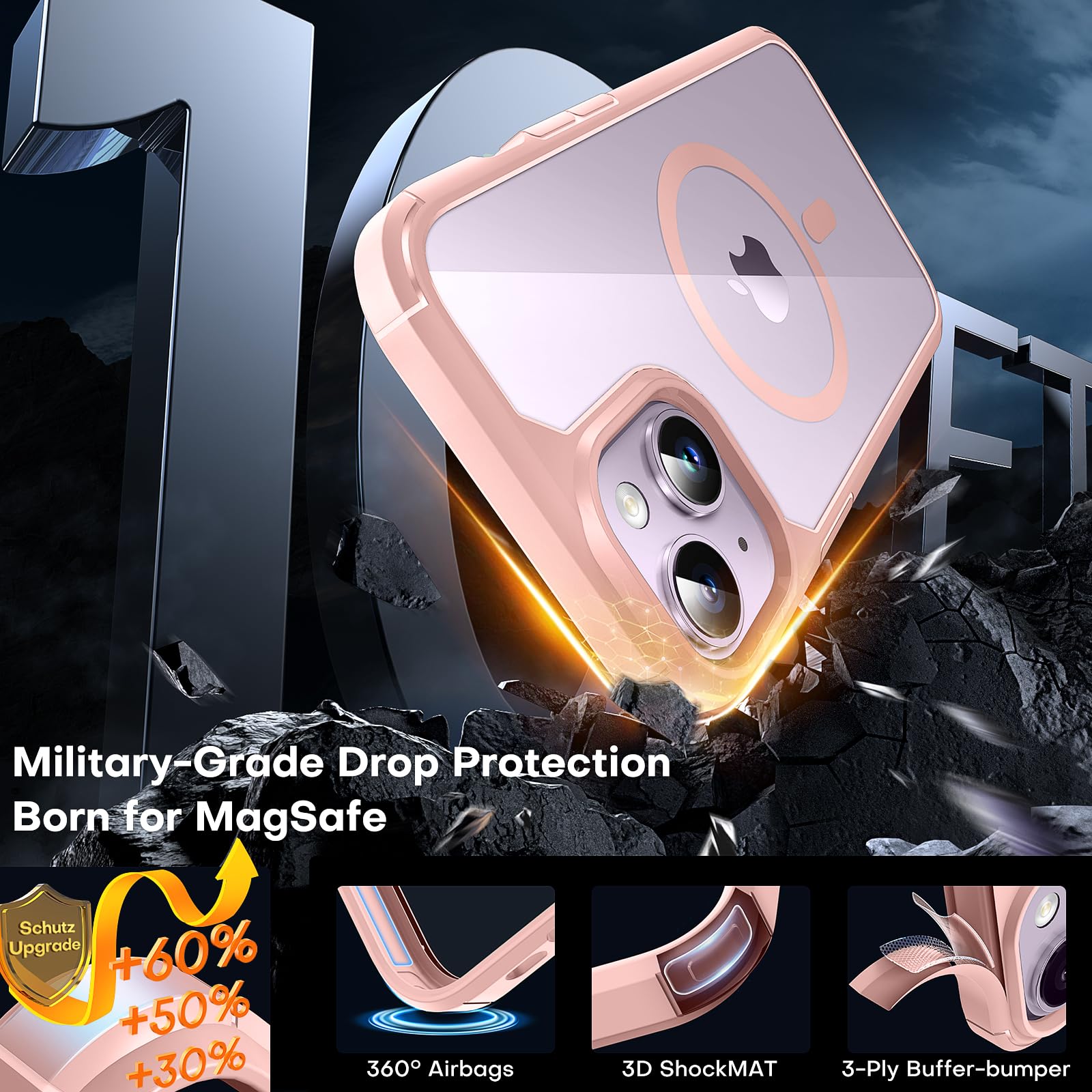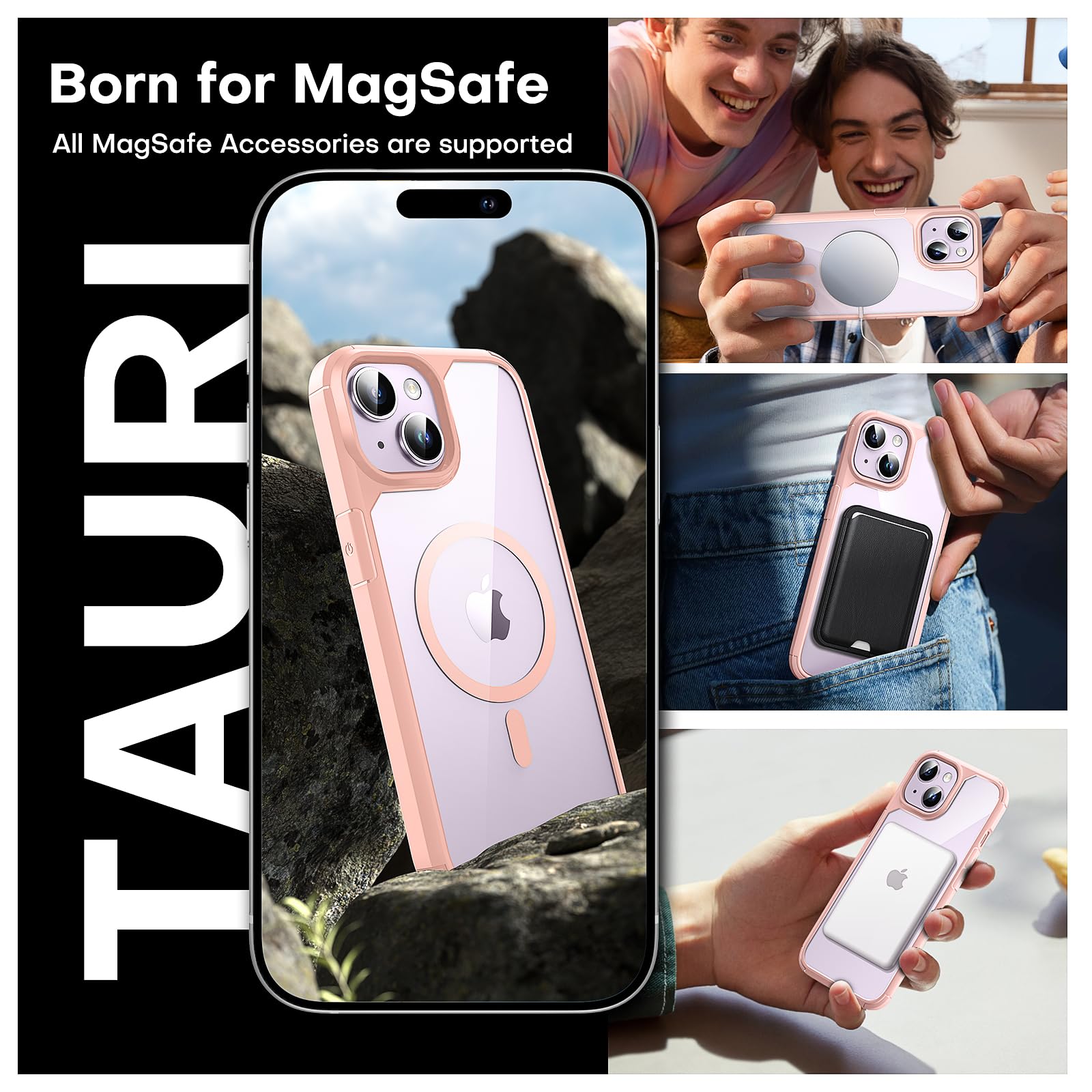 【Strong Magnetic Power】The Super N52 Magnets can strengthen the magnetic connection and ensure auto-alignment to make wireless/ Mag-safe charging faster and safer than before. This Magnetic Case for iPhone 14 is designed for all Qi-certified Mag-safe chargers, Mag-safe wallets, and car mounts. TAURI for iPhone 14 Case will not fall, no matter how it shakes