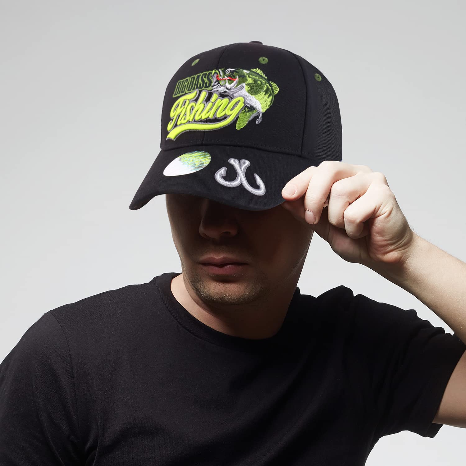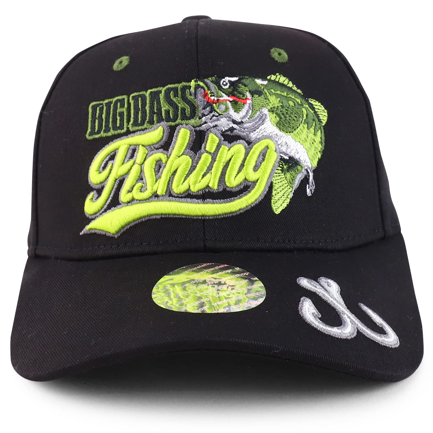 Trendy Apparel Shop Hunting Fishing Embroidered Adjustable Baseball Cap - Bass Black
