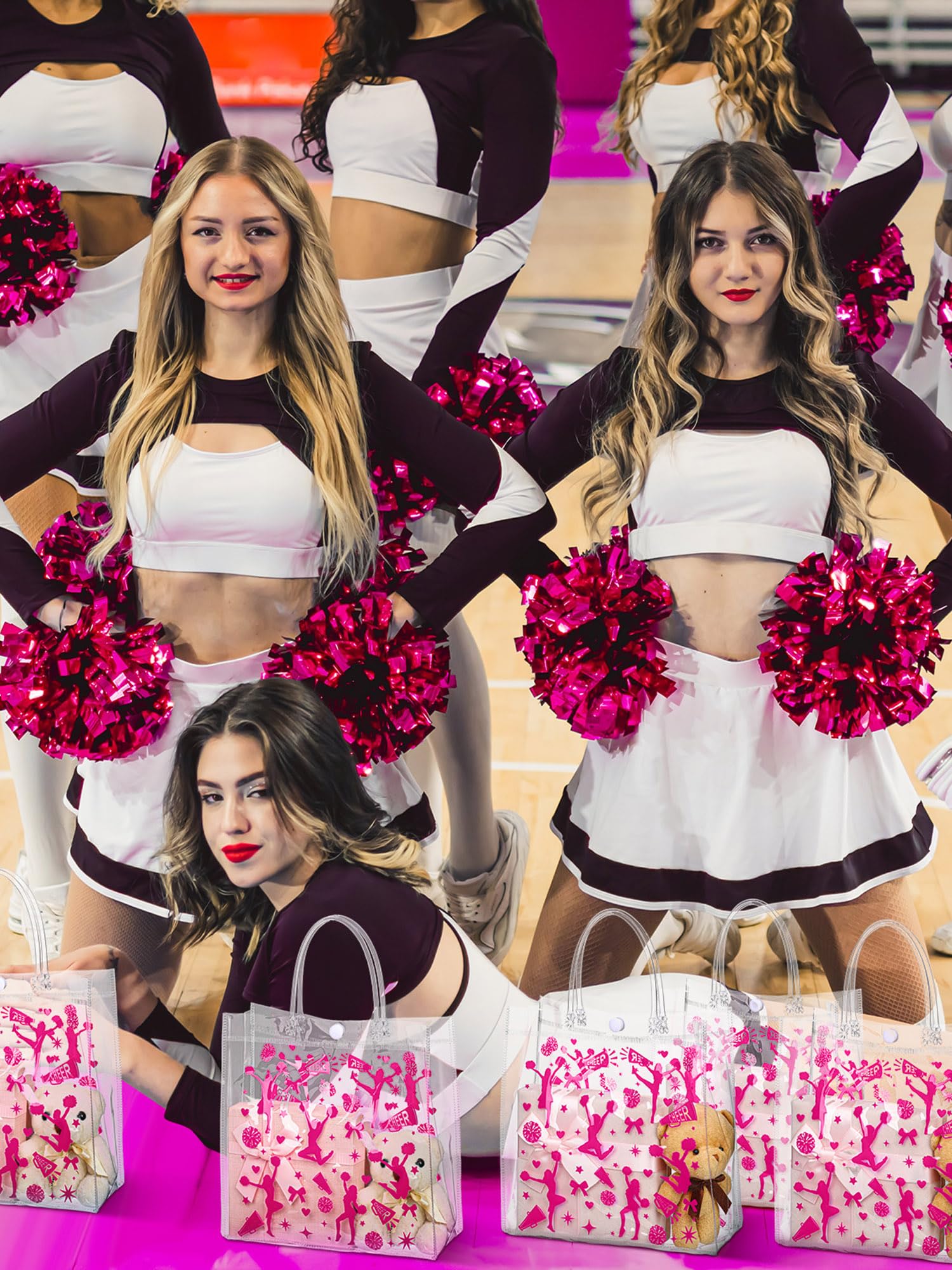 Durable Craftsmanship: crafted from PVC material, these cheerleading goodie bags offer durability and feature reinforced handles that resist breakage, securely holding your items and preventing accidental drops