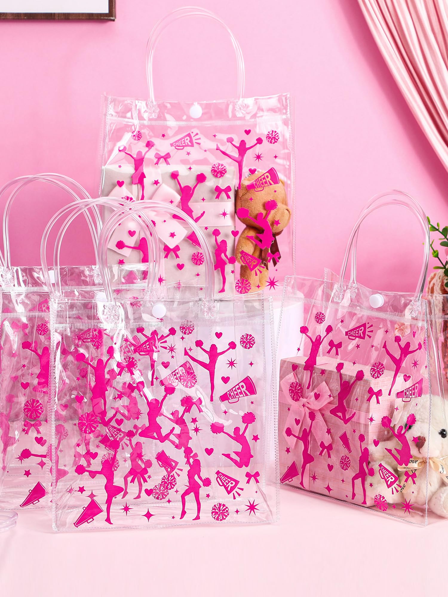 Abundant Quantity for Ample Needs: the package includes 24 cheerleading party clear goodie bags with handles, ensuring a generous supply to meet most party needs; Suitable for packaging gifts to share joy and strengthen relationships