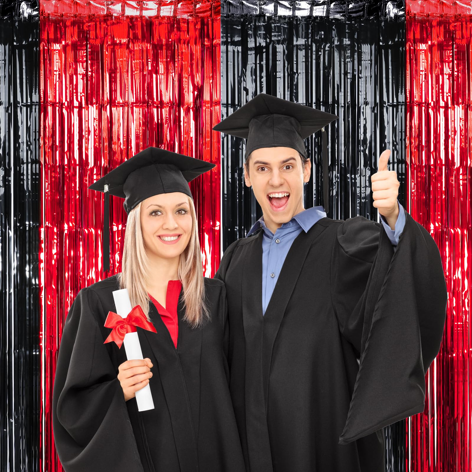 Bright Colors: The graduation foil fringe curtain boasts classic red and black colors, and features a shiny design that is both beautiful and eye-catching. It will surely be a highlight of your party and add to the joyful atmosphere of your celebration.