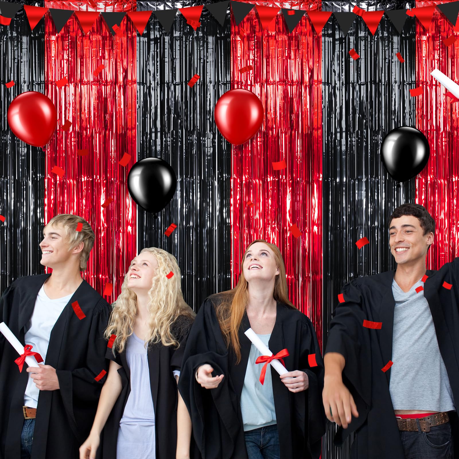 What’s Inside: Included in the package are 3 red and black fringe curtains, each measuring 3.3 x 6.6 ft, making them suitable for decorating most scenes. Perfect for graduation parties, these curtain backdrops will add a pop of color to your gathering and help evoke fond memories.