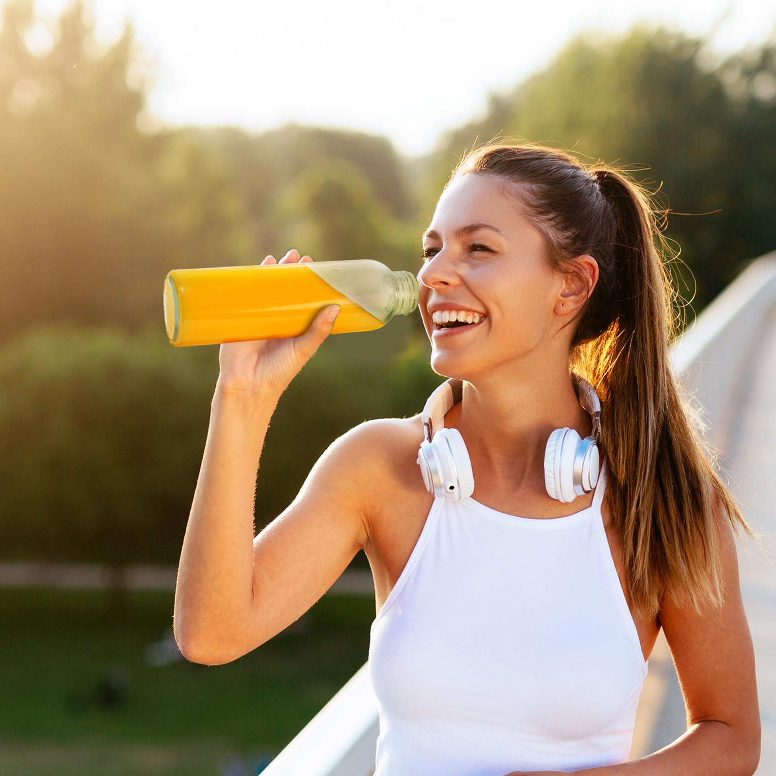 GLASS BOTTLES FOR JUICING AND MORE: Durable stainless steel lids with air and water-tight seals, so it’s completely airtight to keep your beverage fresh without any worry of spills. Throw this glass water bottle in your bag or car and get a healthy start to your day with a juice, smoothie, brew, ice tea, iced coffee, nut milk, milkshakes, Kombucha or water. The 100% leak proof glass bottle will never leave a leaky mess no matter how you place it. The clear glass helps you quickly spot the drink you're in the mood for.