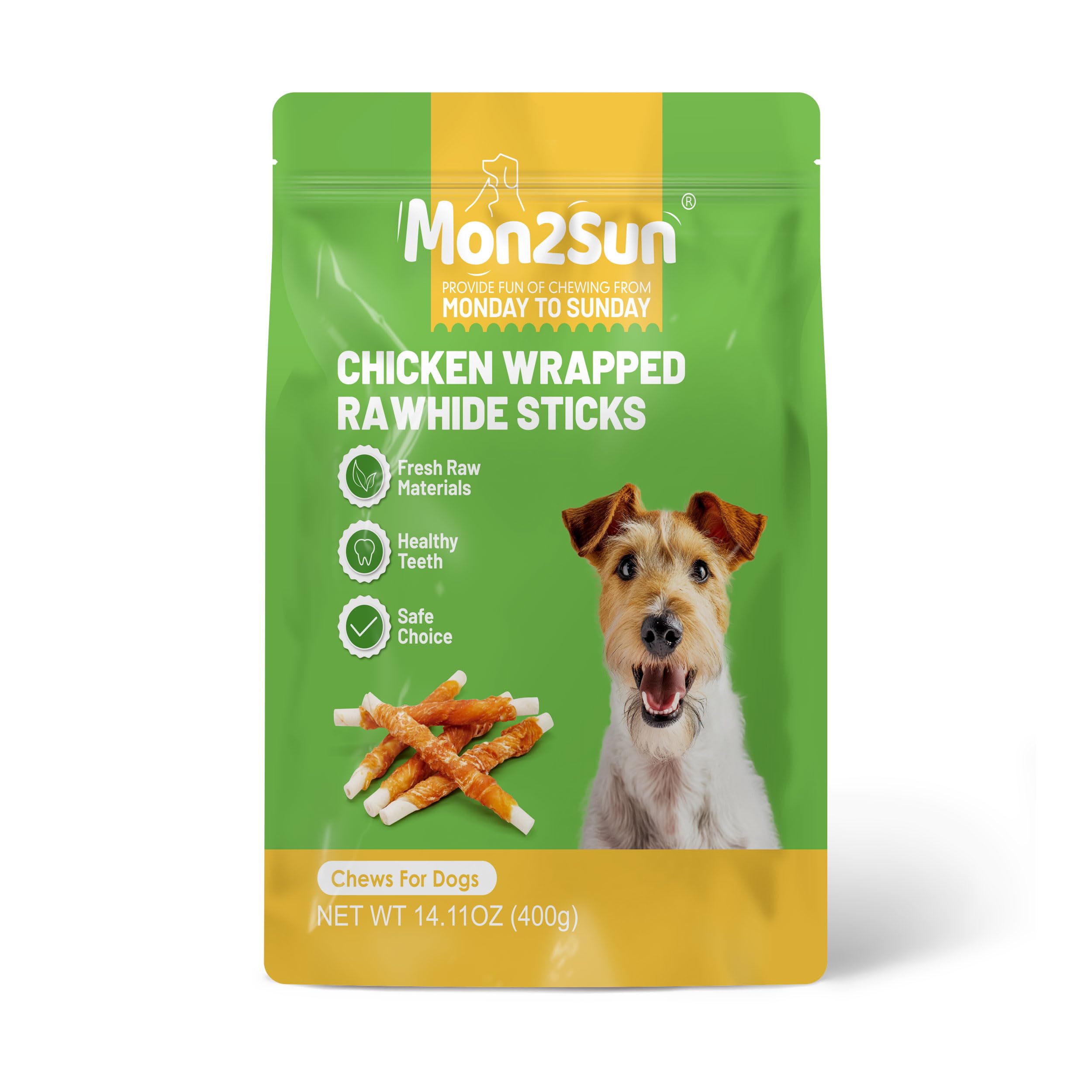 Chicken dog rawhides provide fun chewing enjoyments for your dogs and promote dogs' teeth healthy. Have less plaque and tartar.