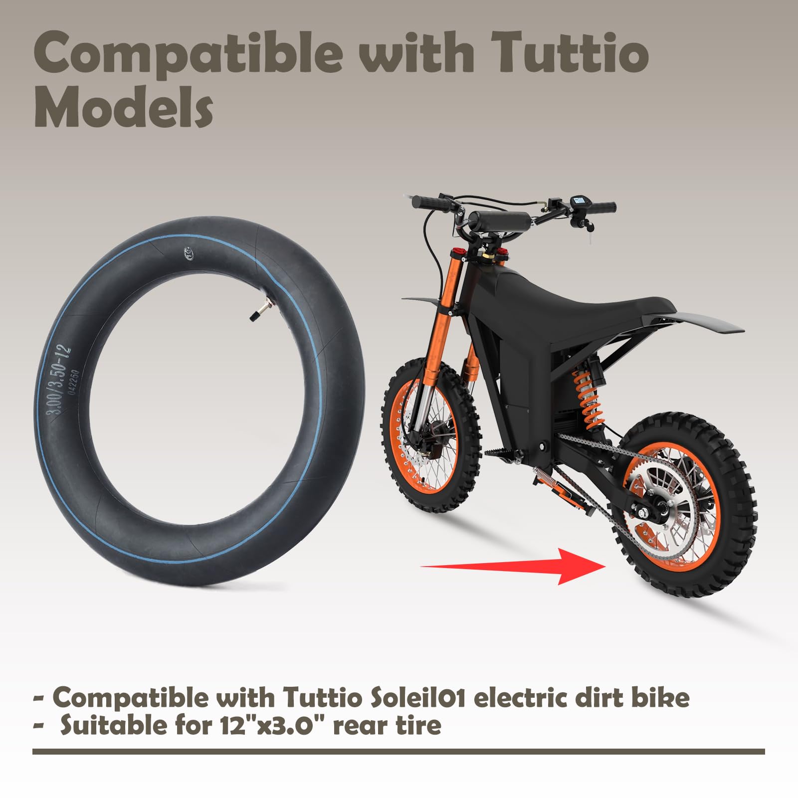 Precise Compatibility: The upgraded rear inner tube replacement is compatible with Tuttio Soleil01 electric drit bike, compatible with Tutti Soleil01 and compatible with Tutto Soleil 01 electric motorcycle, enhancing off-road riding stability