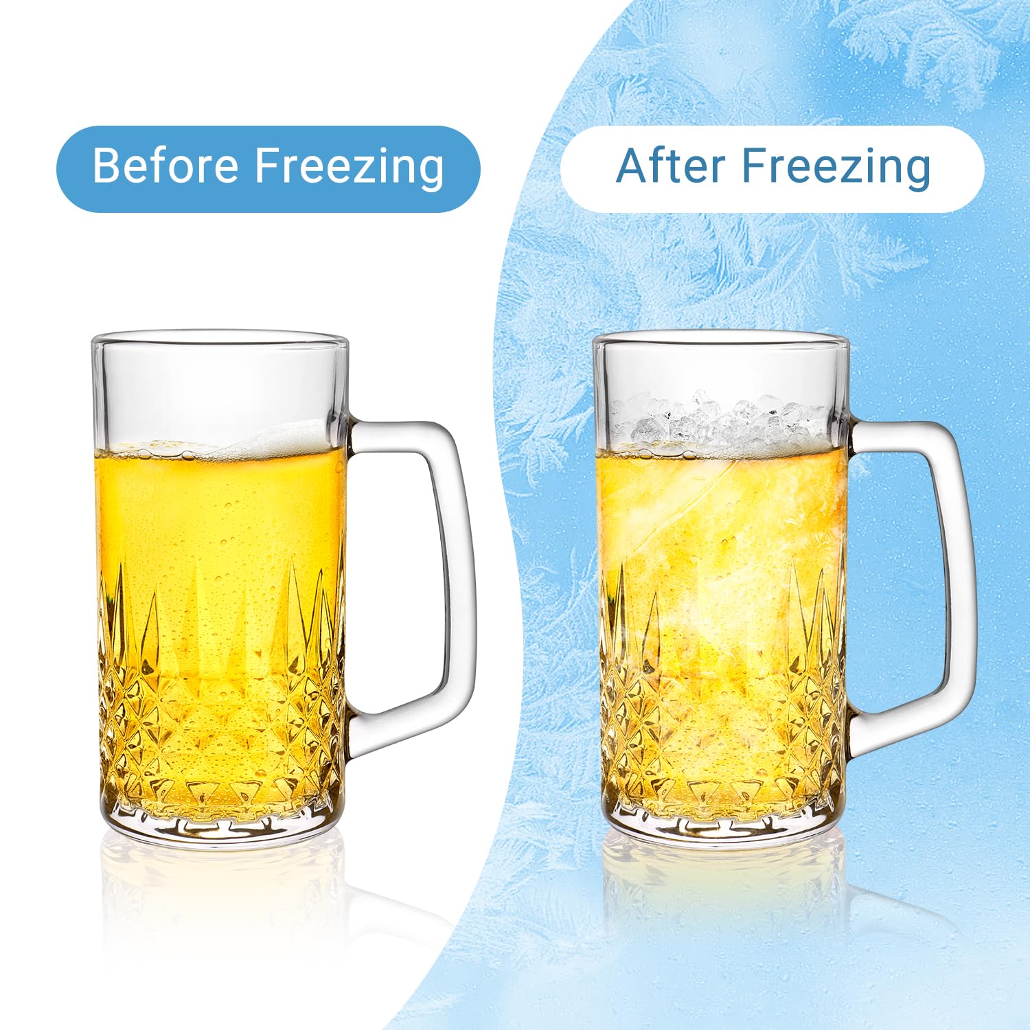 High Quality Glass: Dedicated on creating a high-quality, lead-free, durable beer mugs; Made with thick handles, stable heavy bases and smooth rims for easy gripping and even easier sipping.