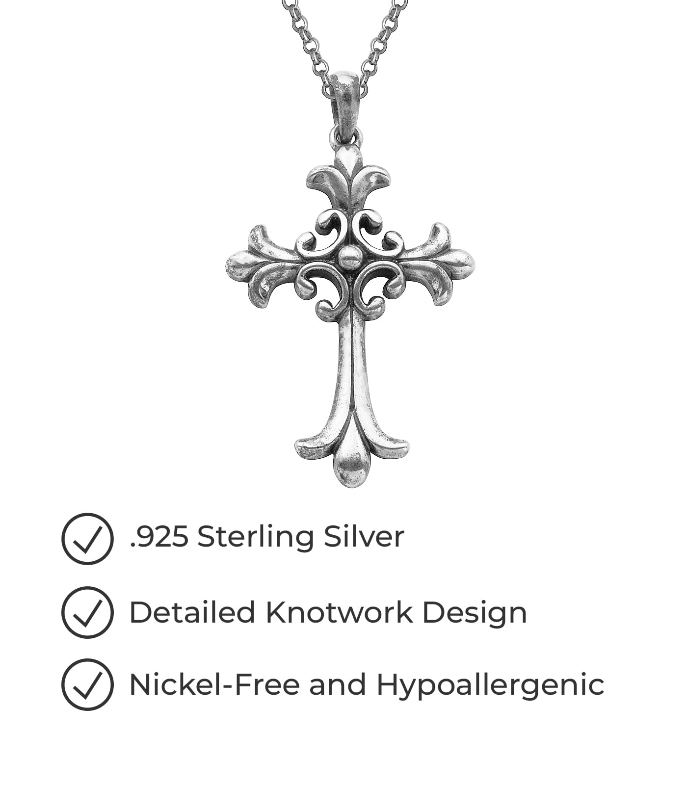 Eye-catching stylish design: Amazon Essentials .925 sterling silver Celtic cross pendant necklace with intricate detailing and an antiqued oxidized finish. This necklace adds a meaningful touch to your style