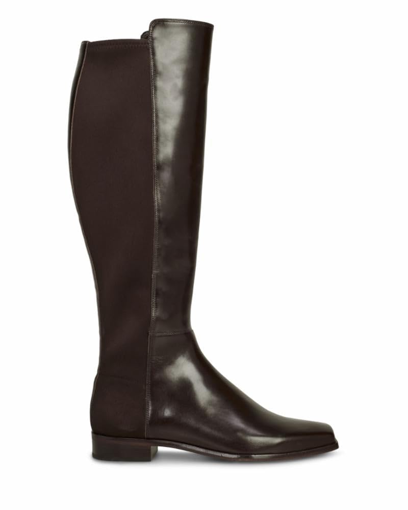 Description The Librina tall shaft boot has a 50/50 construction with a full stretch back making it a great fit for a variety of legs. The tiered topline ensures all day comfort while a inside zip provides ease of entry. The boot has a square toe, a padded footbed, and sits atop a low block heel.