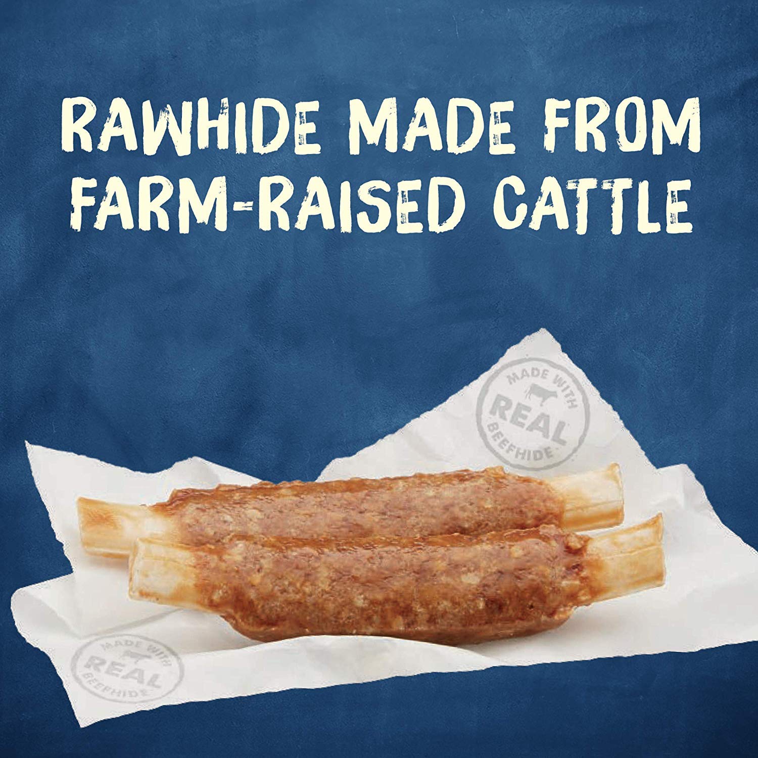 Long-lasting dog chews. Made with real beefhide as the Good ingredient