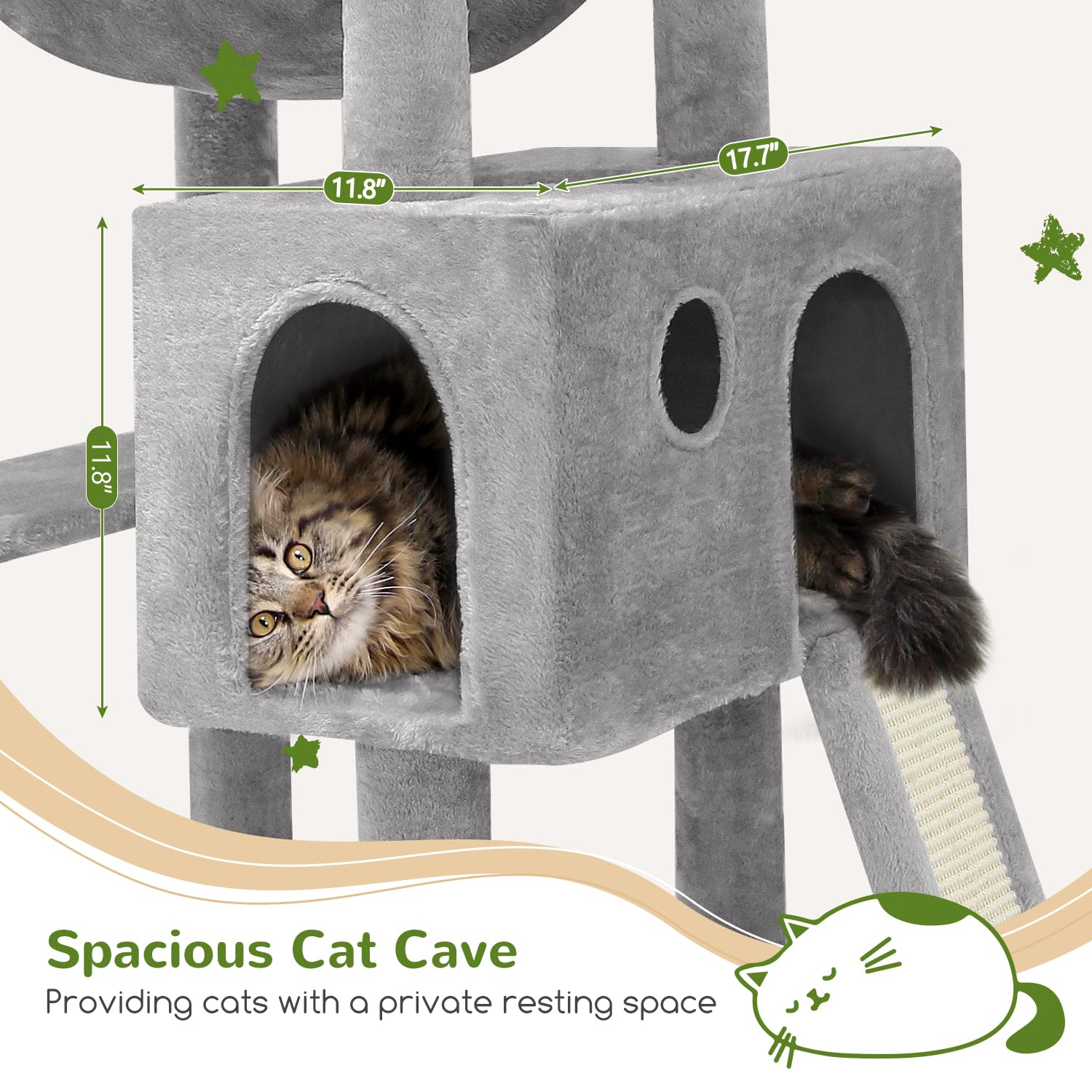 SPACIOUS AND COMFORTABLE CAT CONDO - This cat tower provides a spacious cat condo that allows cats to rest, hide, or play comfortably inside. The cat cave is a safe, private space that meets cats' needs