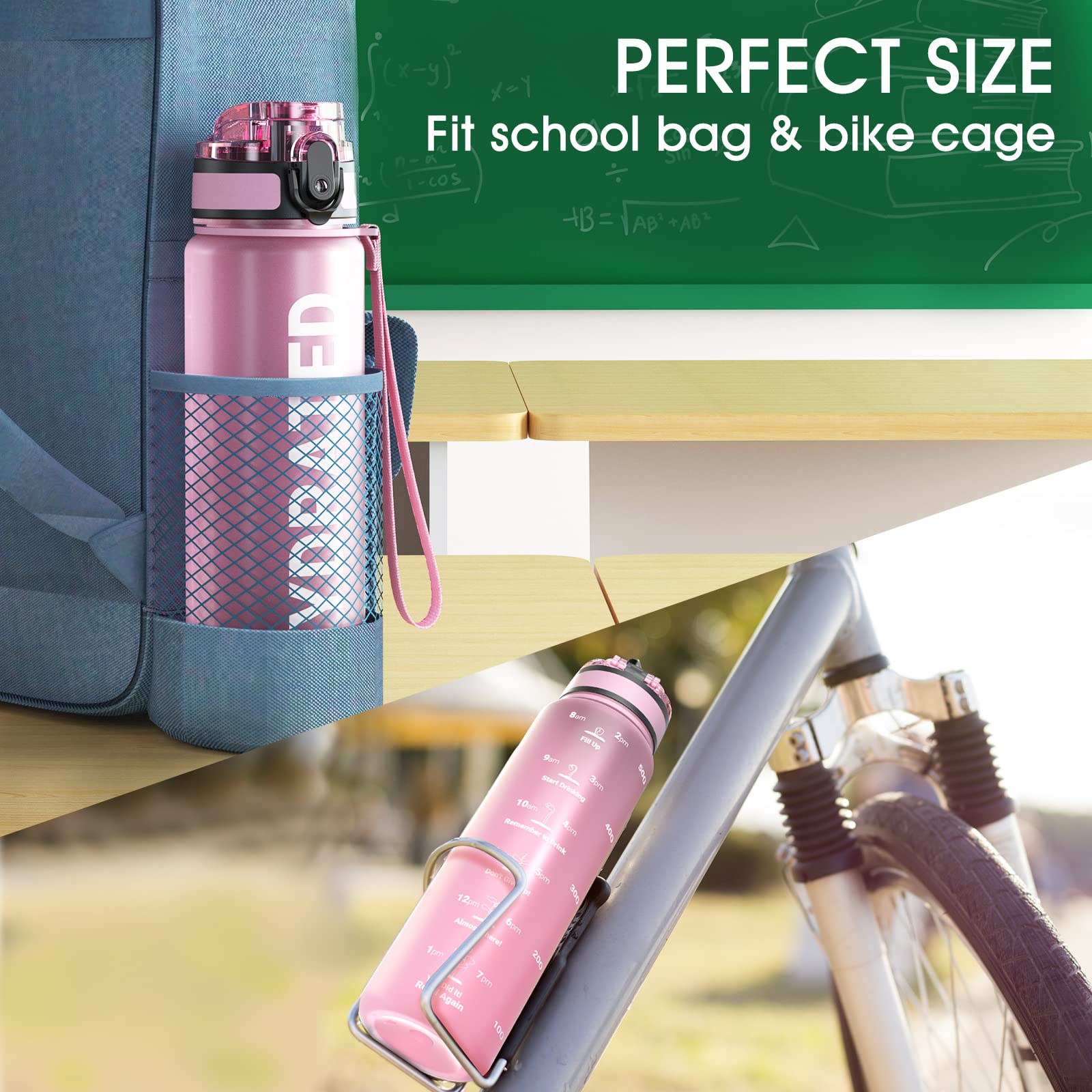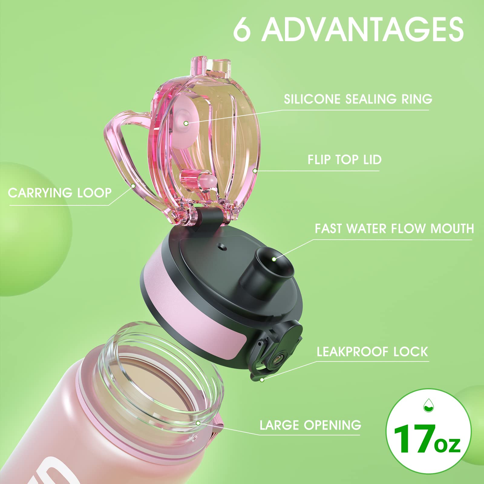 Easy Open yet Leakproof: this water bottle features a leakproof lid with a flip-lock to avoid leakage when you throw it in your bag. the lid adapts a flip-up mechanism so you can open it easily with only one hand and one press