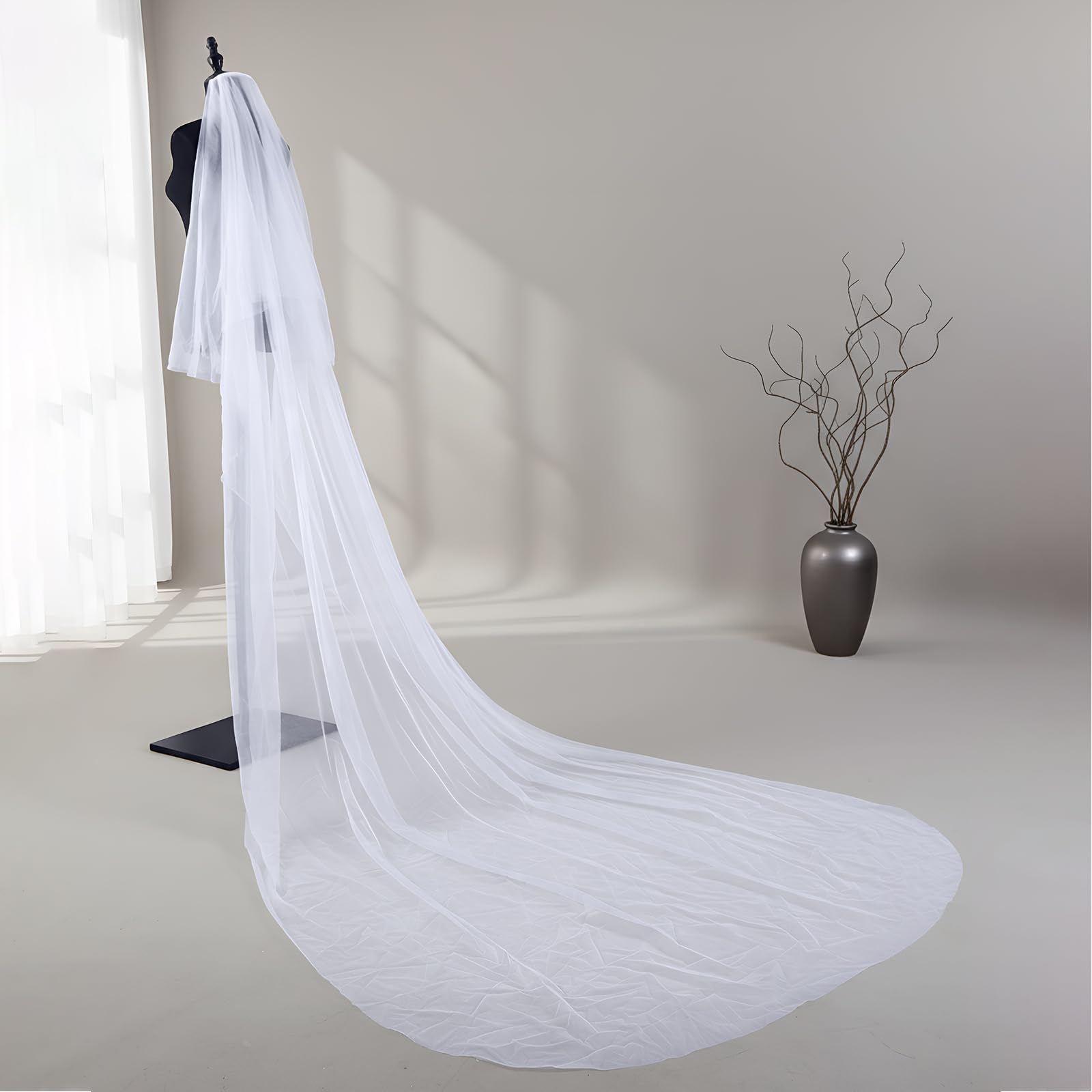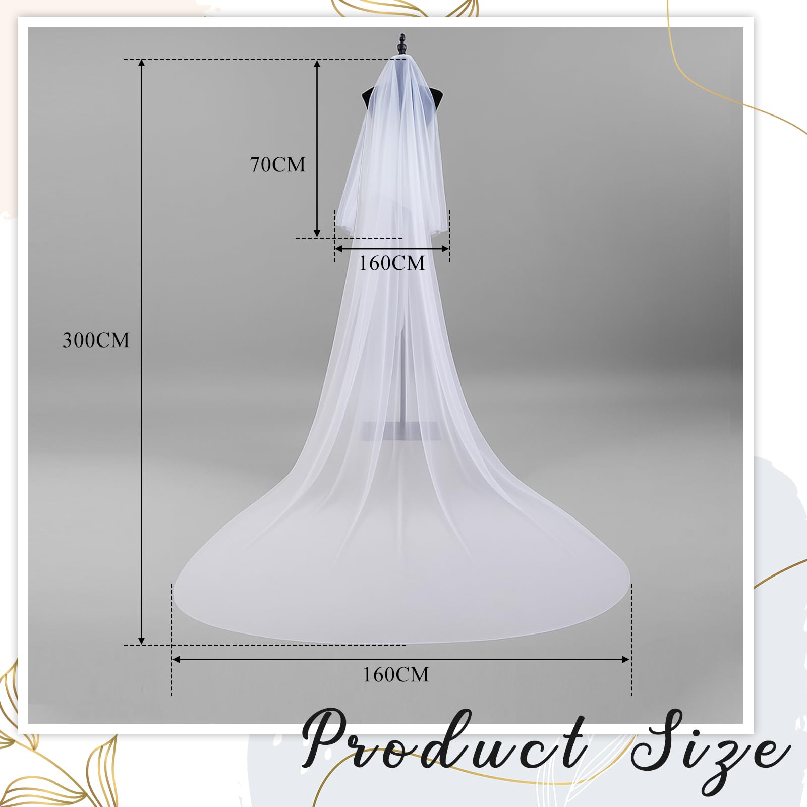 Veil Details: this is a 2-tier cathedral plain wedding bridal veil; The first layer measures approximately 27.6 x 63 inches/ 70 x 160 cm, and the second layer is approximately 118 x 63 inches/ 300 x 160 cm; Featuring a delicate small train, it is suitable for weddings, events, parties, and photography shoots