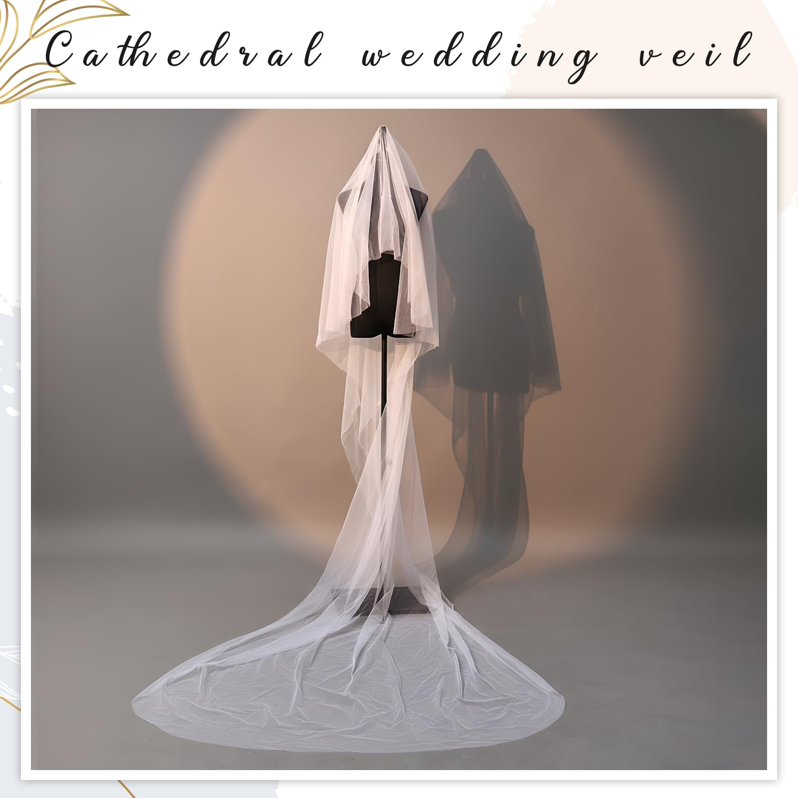 Soft Fabric: this cathedral wedding veil is crafted from chinlon soft tulle, it is less prone to wrinkles and easy to care for; It is lightweight overall with a fine texture, flowing gracefully and exuding elegance as you move