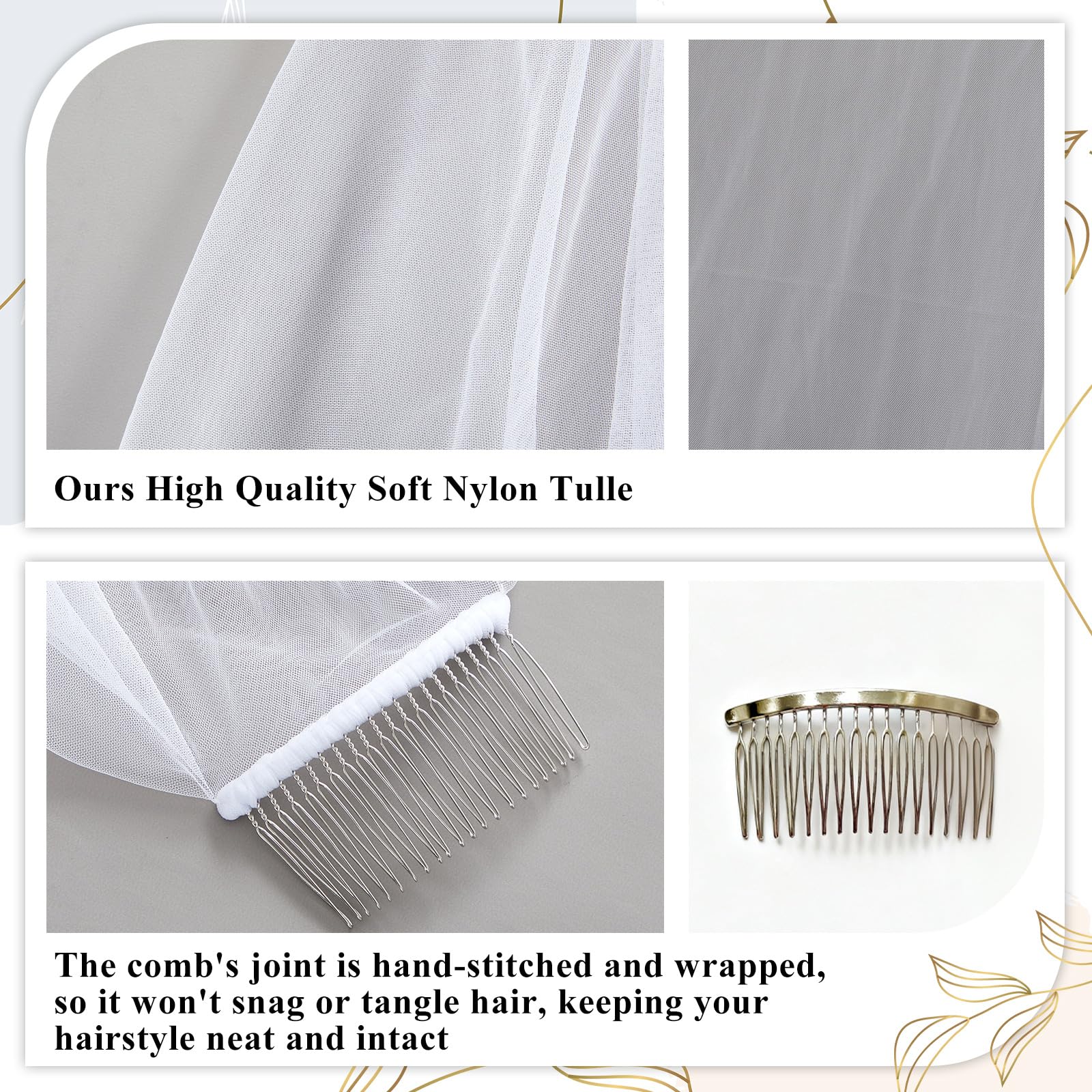 Metal Comb Design: this long wedding veil comes with a white gold-plated metal comb measures approximately 1.6 x 3.4 inches/ 4 x 8.5 cm; The comb's joint is hand-stitched and wrapped, so it won't snag or tangle hair, keeping your hairstyle neat and intact