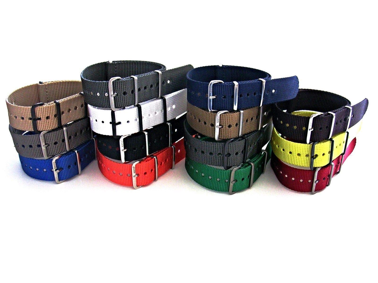 Description NATO G10 XTREME Heavy Ballistic nylon watch band strap. COLORS: GREY SIZES: 20mm and 22mm. Buckle Features: Stainless Steel( mm Size stamped on back of Buckle ) Buckle and Keepers: High-Polished / Satin Brushed / Black PVD. Tongue Holes 17 Heat Sealed tongue holes. Taper: Non-Taper--buckle and watchband are the Same Size. Thickness: 1.5mm thickness ( HEAVY Nylon ). Length:11.75” - 295mm. MoD ( NOT SHORT Chinese version ). EdgesHeat Sealed Edges. Backing Ballistic Nylon. Construction: HEAVY Ballistic Nylon---Heat Welded with matching Nylon Stitching. Finish: Ballistic Nylon Weave / with Colored Stitched Edges. Keepers: 3 Stainless Steel Keepers---Stitched and Heat Welded in place. Ends Heat Sealed and Stitched. Manufacturer: NATO International .FREE: Set of Spring Bars included in every purchase . FAST, FREE ,U.S. shipping.