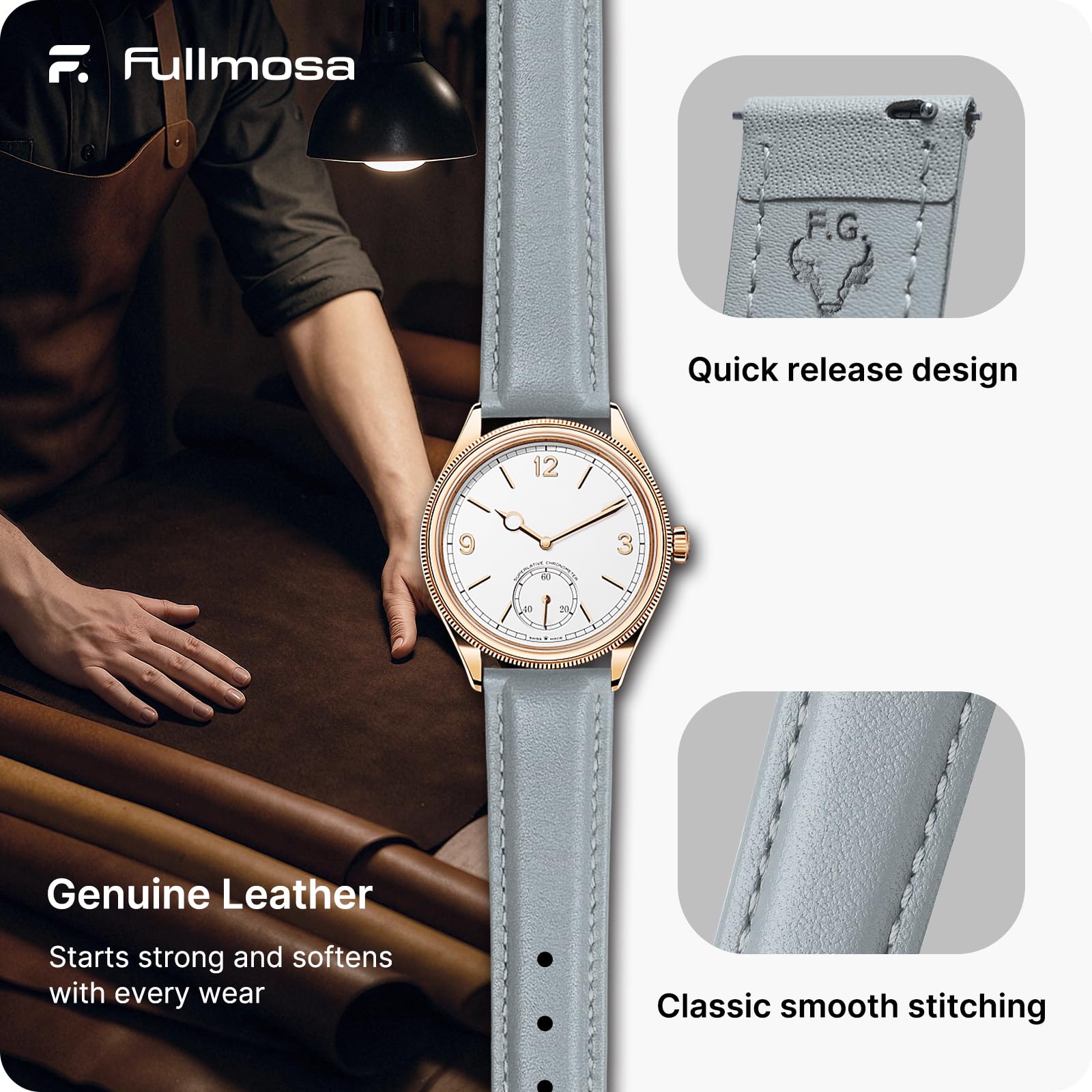 [Quick Release Function] Fullmosa fast release wristbands are an upgrade from typical pins, enabling you to replace your watch band in seconds. An aided tool is also supplied to assist you in removing your old band.