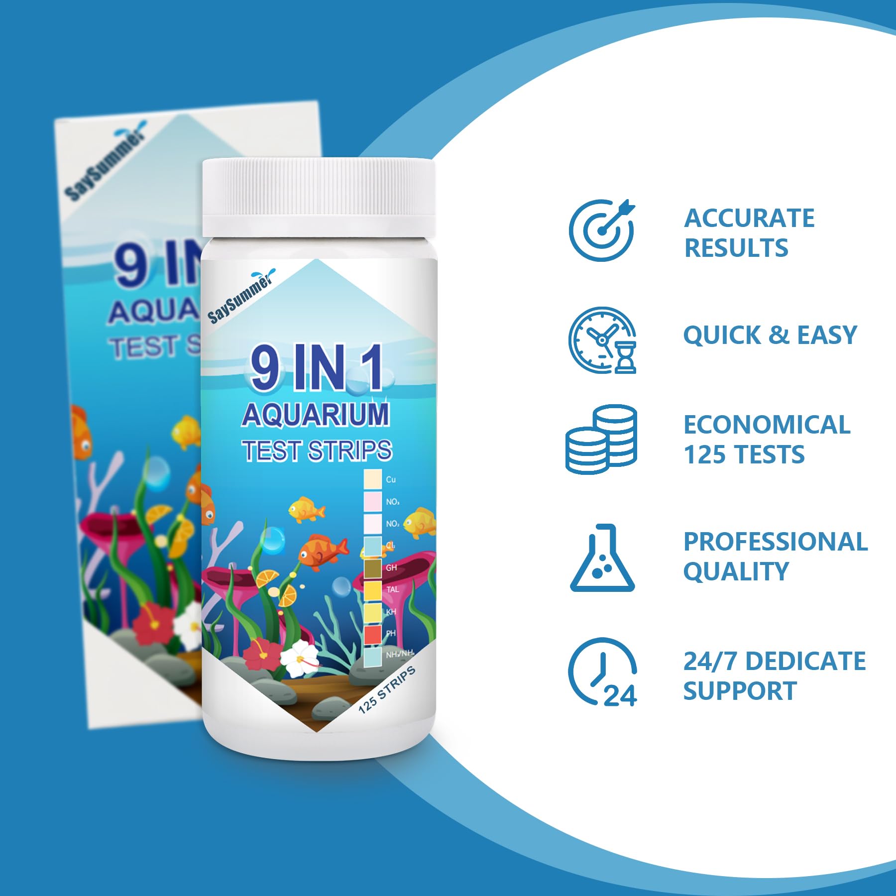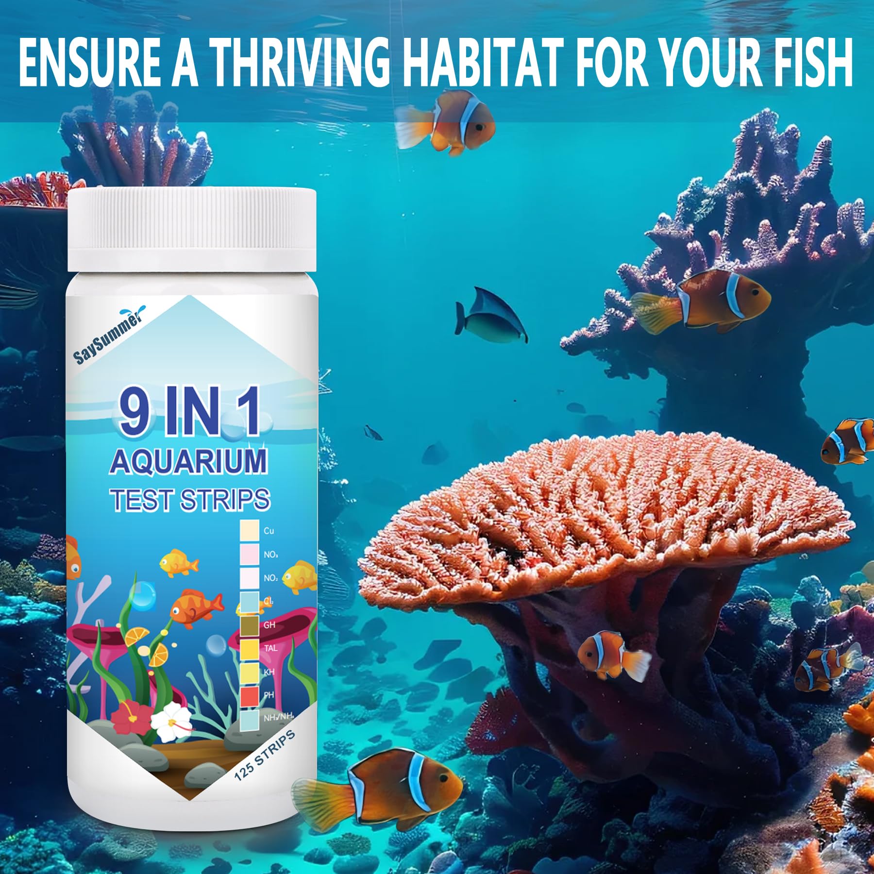 Complete Aquarium Water Test Kit: Our fish tank test strips transform complex professional testing into a simple, user-friendly solution. This comprehensive fish tank kit measures 9 crucial elements: Ammonia Nitrogen, Copper, Nitrate, Nitrite, pH, Free Chlorine, Hardness (GH), Carbonate (KH), and Total Alkalinity. By ensuring substances affecting fish health stay below safe levels, stabilizing pH, and maintaining buffering capacity, it fosters a healthy, stable aquatic environment.