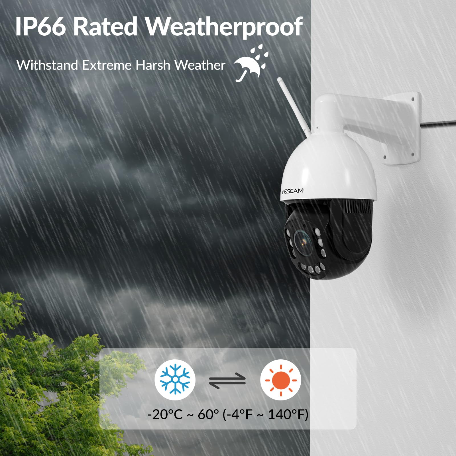 【Smart Home Sync & IP66 All-Weather Durability】A waterproof IP security camera (IP66) compatible with Alexa/Google Home for voice-controlled monitoring like “Show the front yard”. IP66-rated shell withstands storms, dust, and extreme temps(-4°F-122°F)— ideal for outdoor use in farms, docks, or suburban yards. Its vandal-proof design and ptz optics camera outdoor functionality make it a top-tier choice for dome security cameras applications.