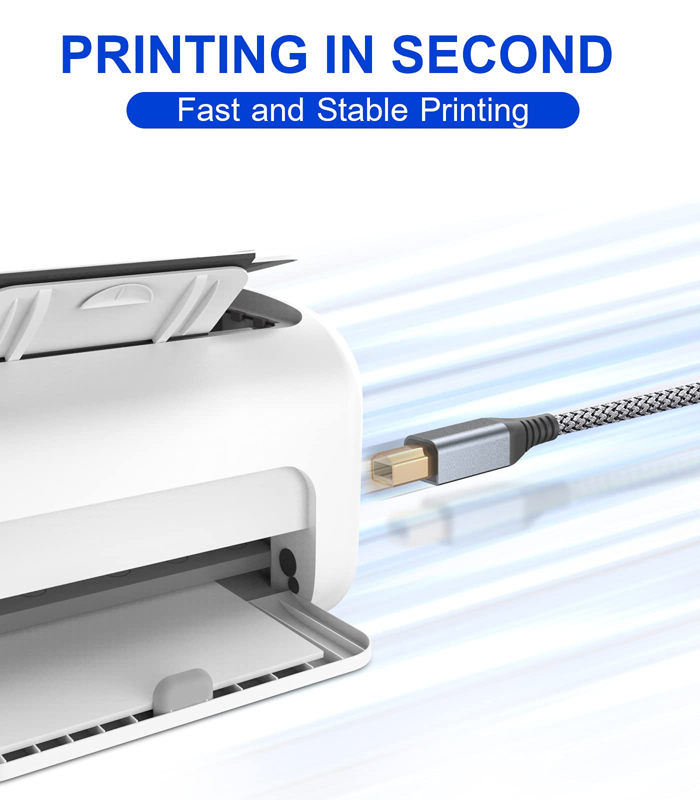 [Nylon Tangle-free Design]: Tangle-free Nylon Braided Design, this USB 2.0 Printer Cord is far more dependable than others in its price range. Premium nylon braided cable adds additional durability and tangle free.