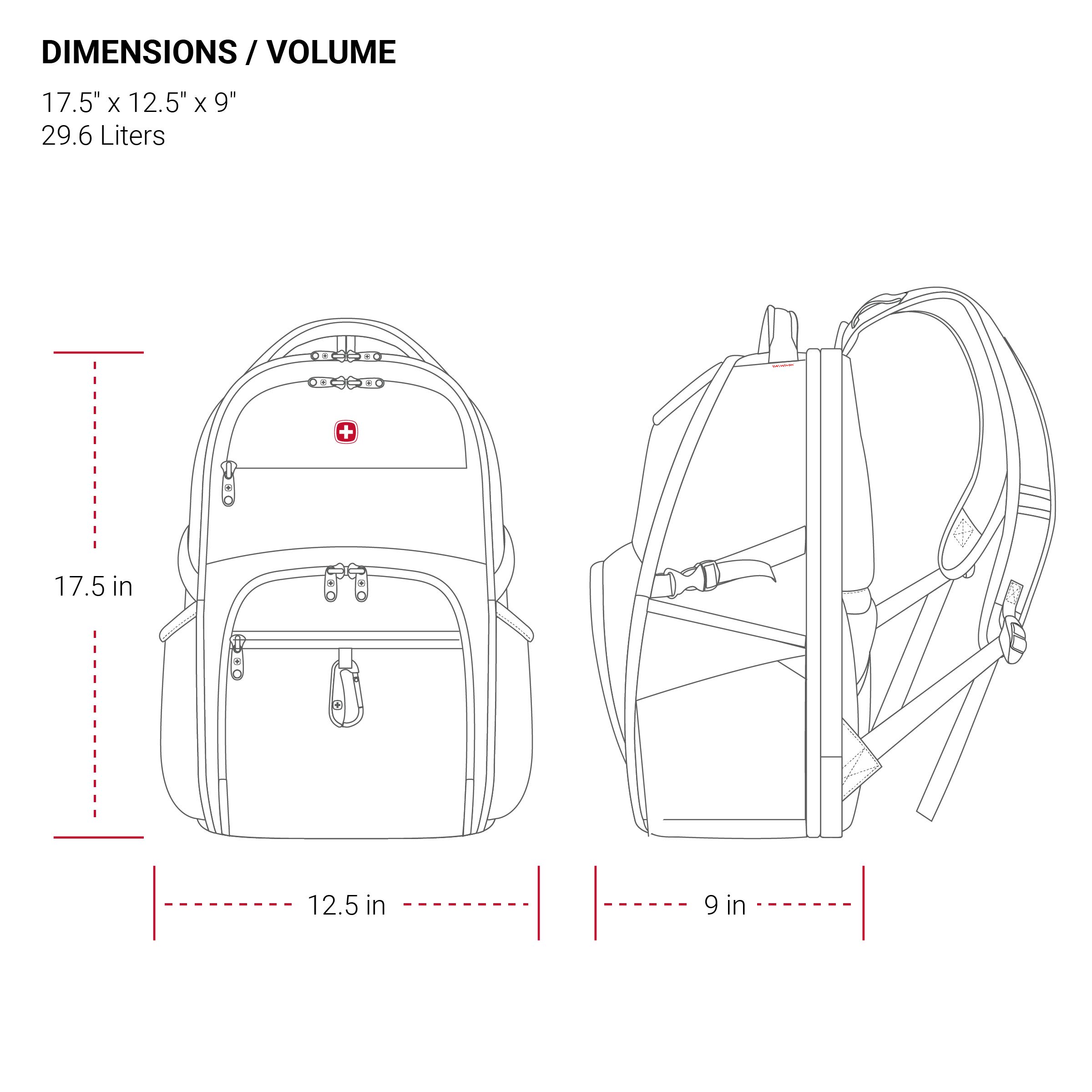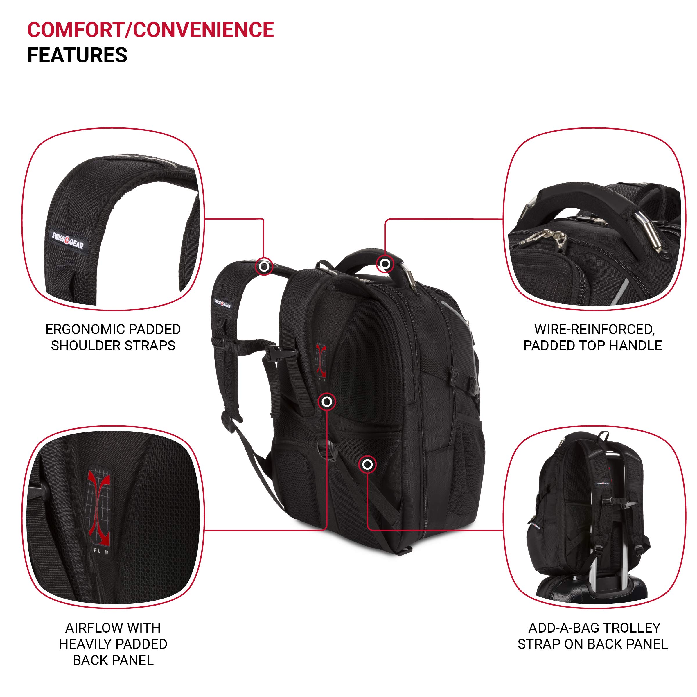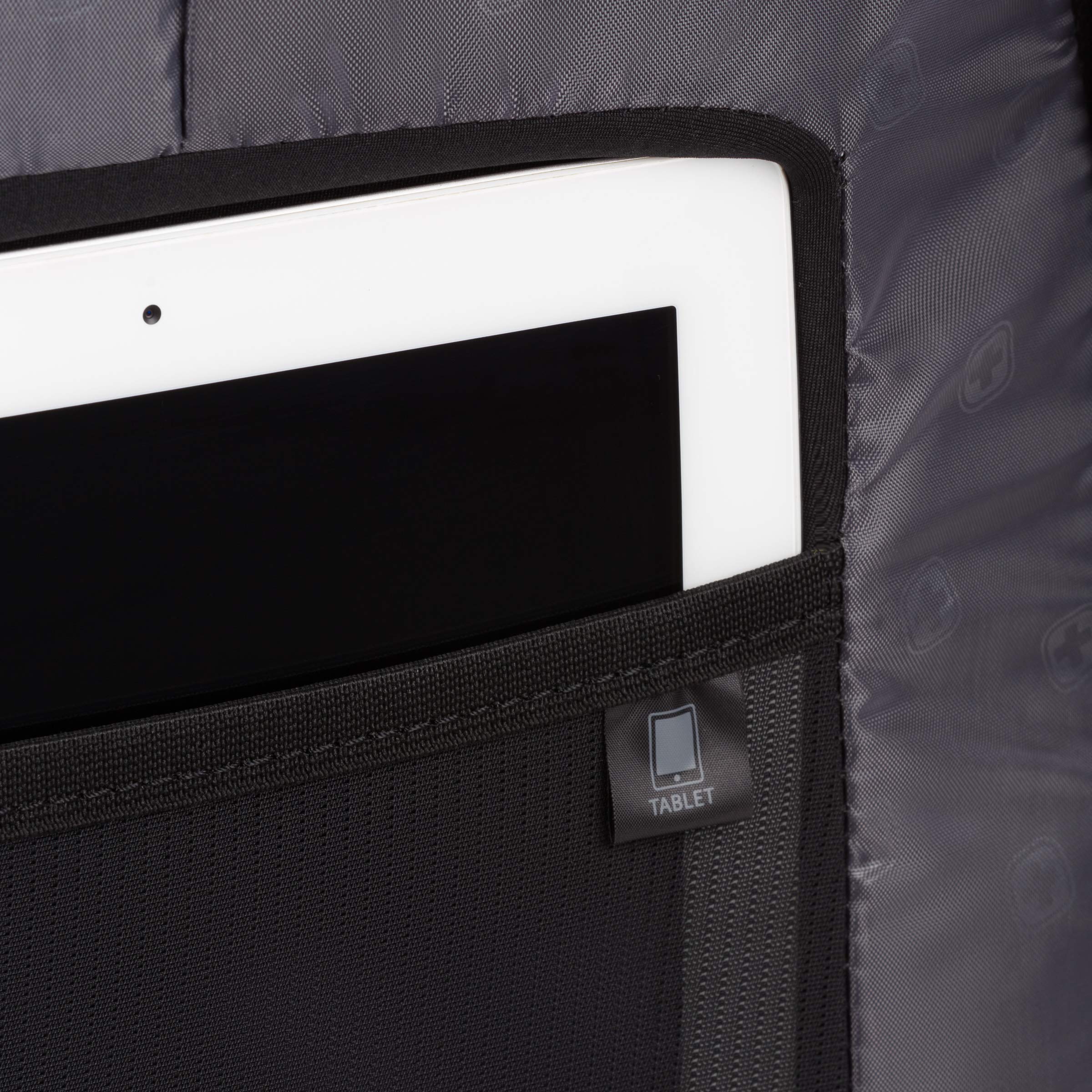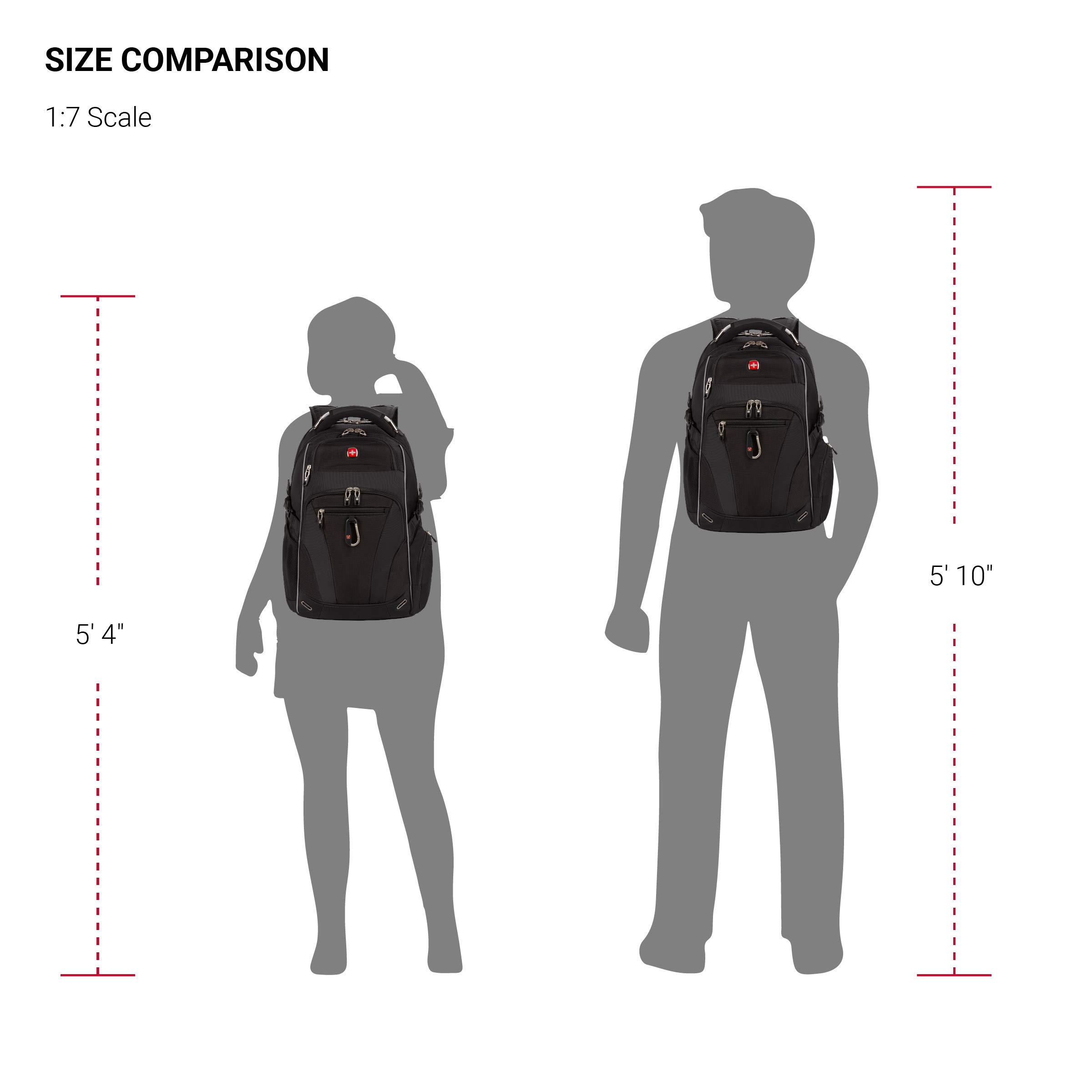 Description SWISSGEAR 6752 ScanSmart Laptop Special Edition Backpack allows you to breeze through airport security while keeping your 15” laptop secured in its padded, high-density foam compartment. Features three large zippered compartments and a deep front pocket and organizer. Floating TabletSafe™ pocket keeps your tablet or e-Reader from shifting. Store your sunglasses and phone in the fleece-lined, crush-resistant top accessory pocket. Interior zip mesh pockets and gusseted sleeves will keep your valuables organized. Contrast gray piping adds style while adjustable side compression straps and sternum strap allow for even weight distribution. A SWISSGEAR reinforced steel top handle makes the bag easy to pick up and its side pockets keep your belongings within reach and easy to organize